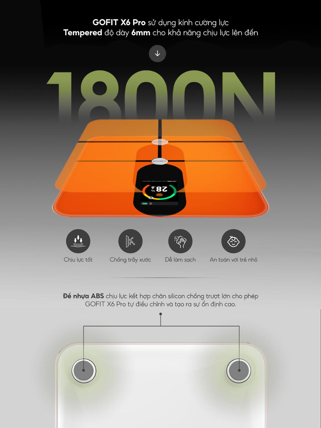 Cân sức khỏe điện tử Crenot Gofit X6 Pro cân phân tích lượng mỡ đo 23 chỉ số cơ thể thông minh cân y tế mini inbody