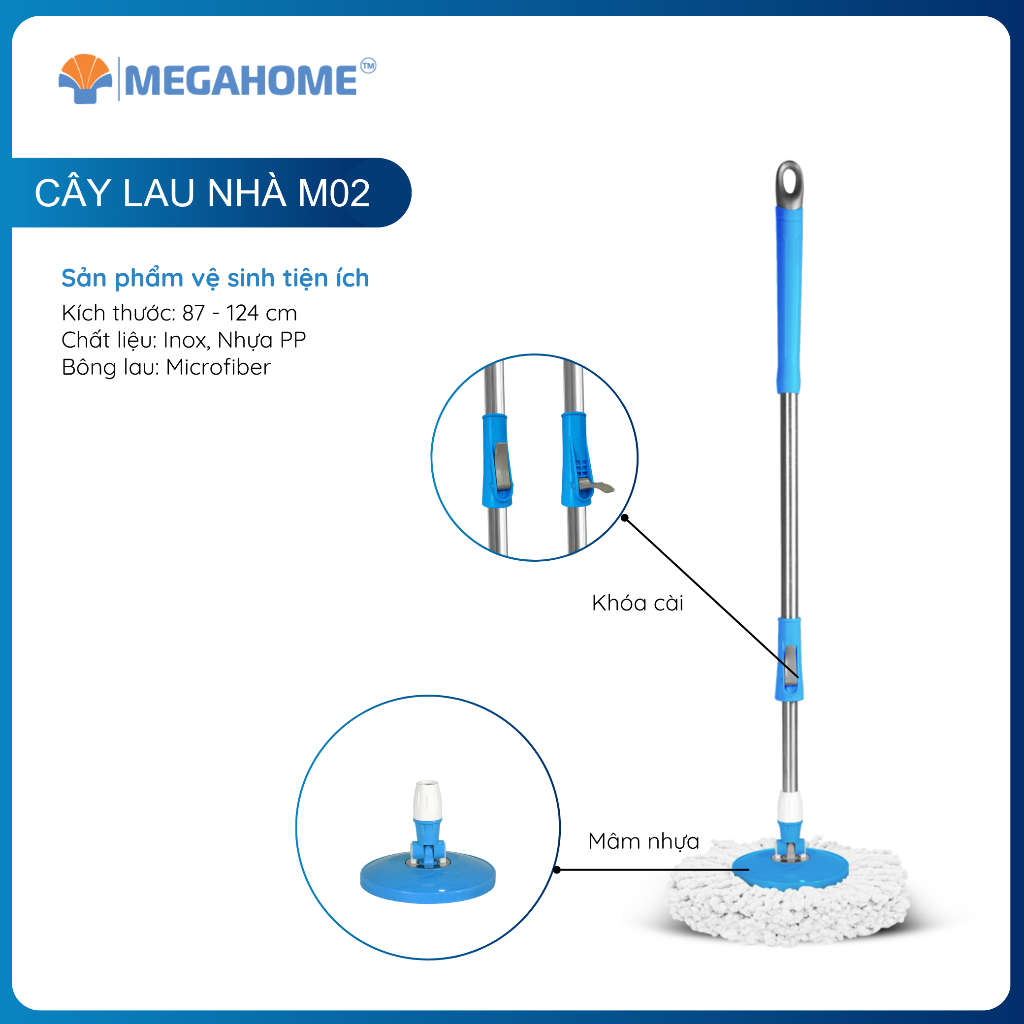 Cây lau nhà Megahome M02 mâm nhựa sử dụng được cho tất cả cây lau nhà 360 độ
