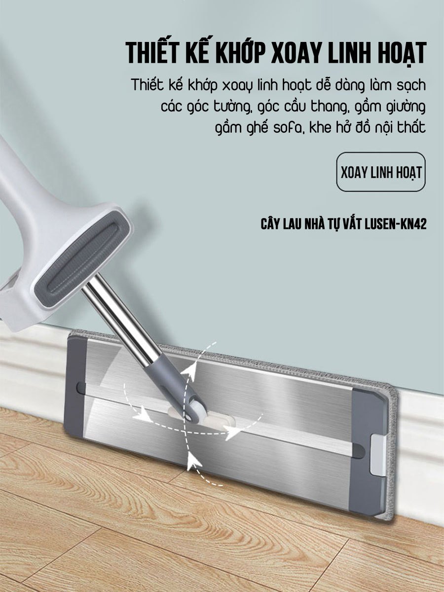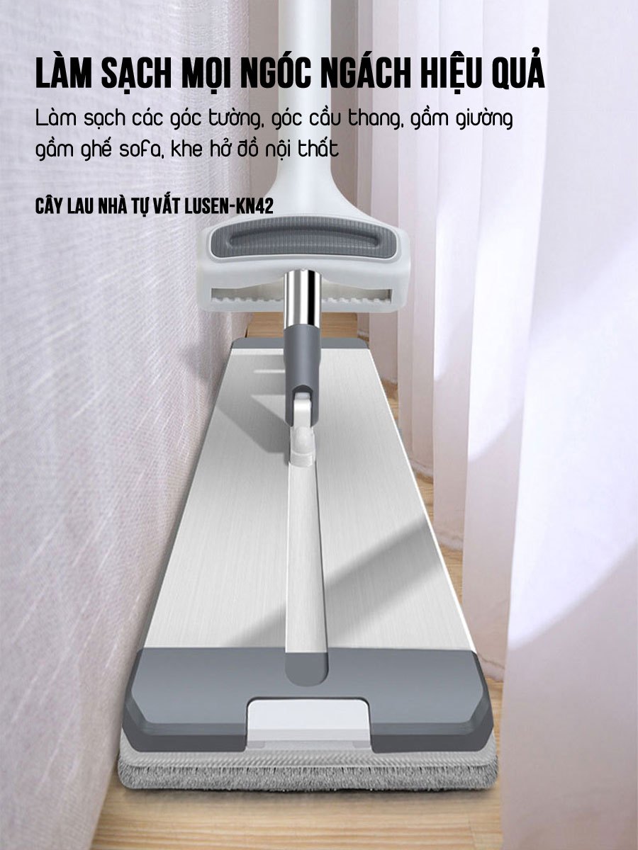 cây lau nhà tự vắt Lusen KN42, bộ lau nhà tách nước bẩn, cây lau nhà công nghiệp, cây lau sàn nhà