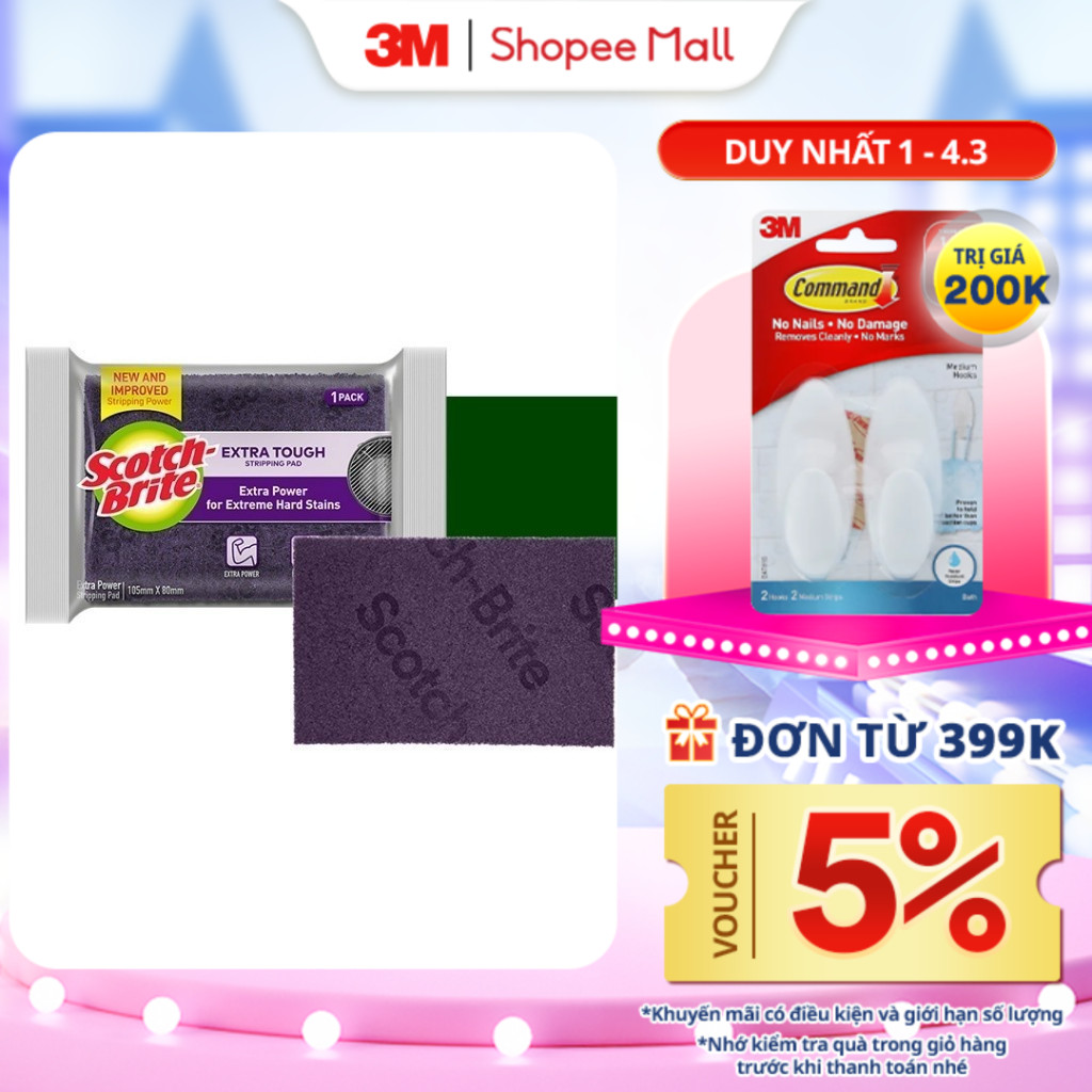 Cước rửa chén siêu mạnh 3M™ Scotch-Brite®, an toàn cho vỉ nướng, nồi inox, gang, thép, gói 4 miếng