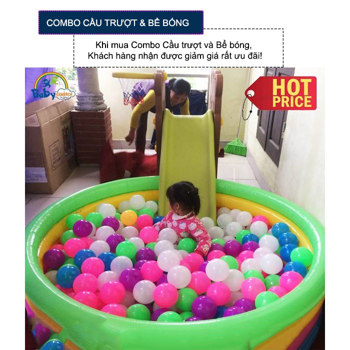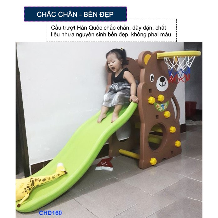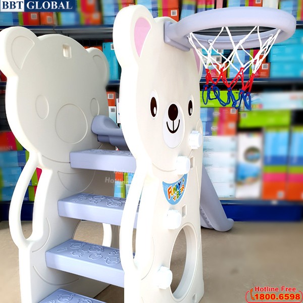 Cầu trượt Hàn Quốc cao cấp gấu Teddy có ném bóng rổ BBT Global CHD160