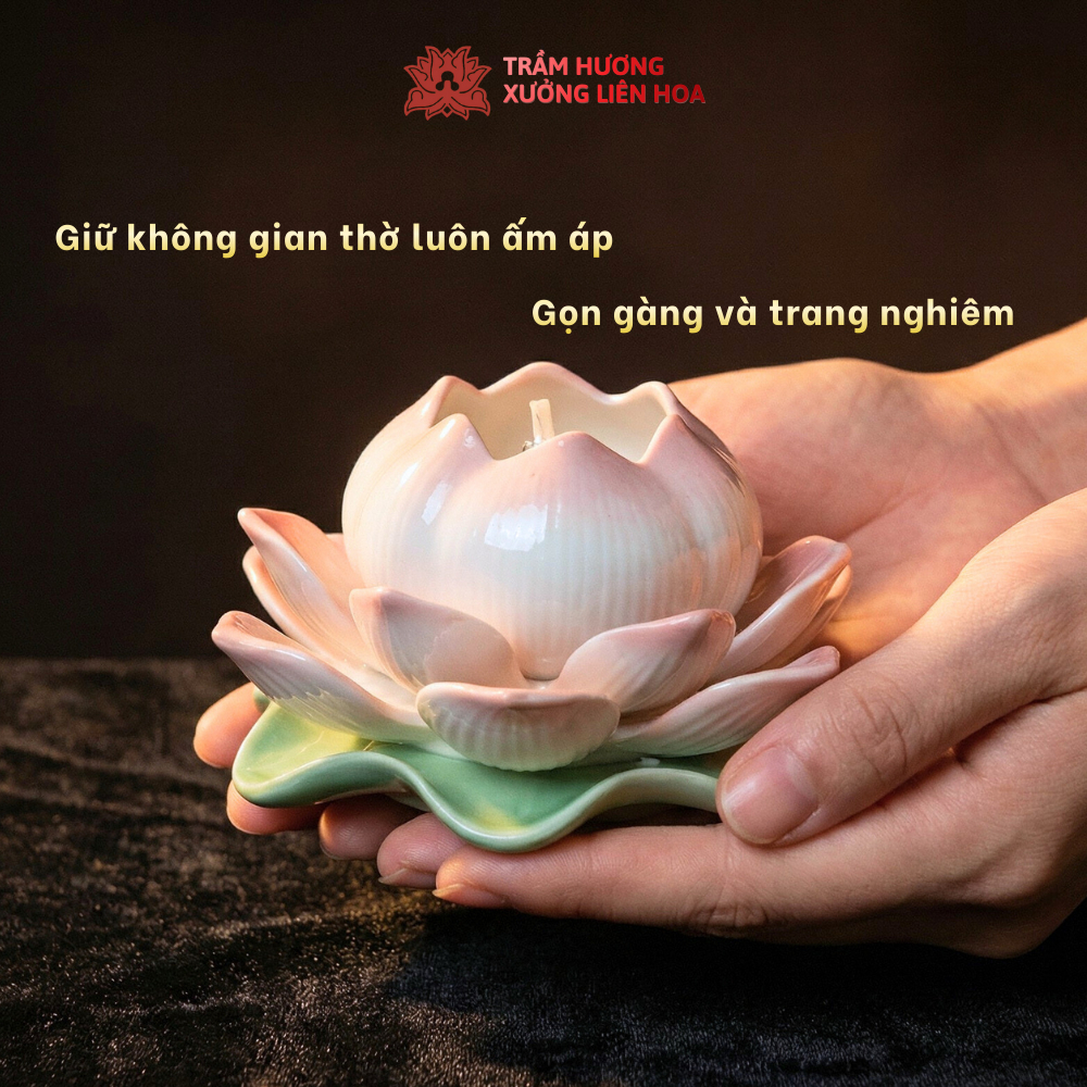 Cặp Đèn Dầu Không Bóng Hình Hoa Sen Gốm Sứ Cao Cấp Thắp Sáng Không Gian Thờ Tự - Bộ 2 cái