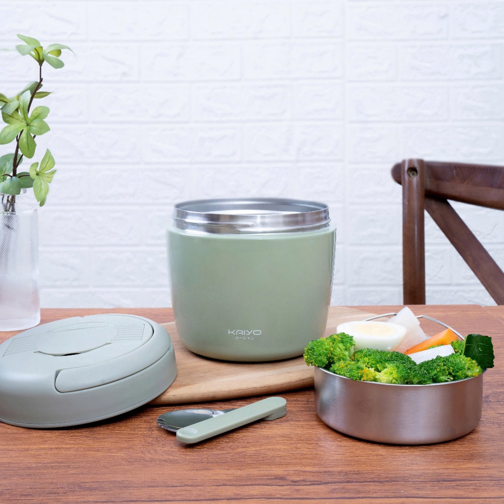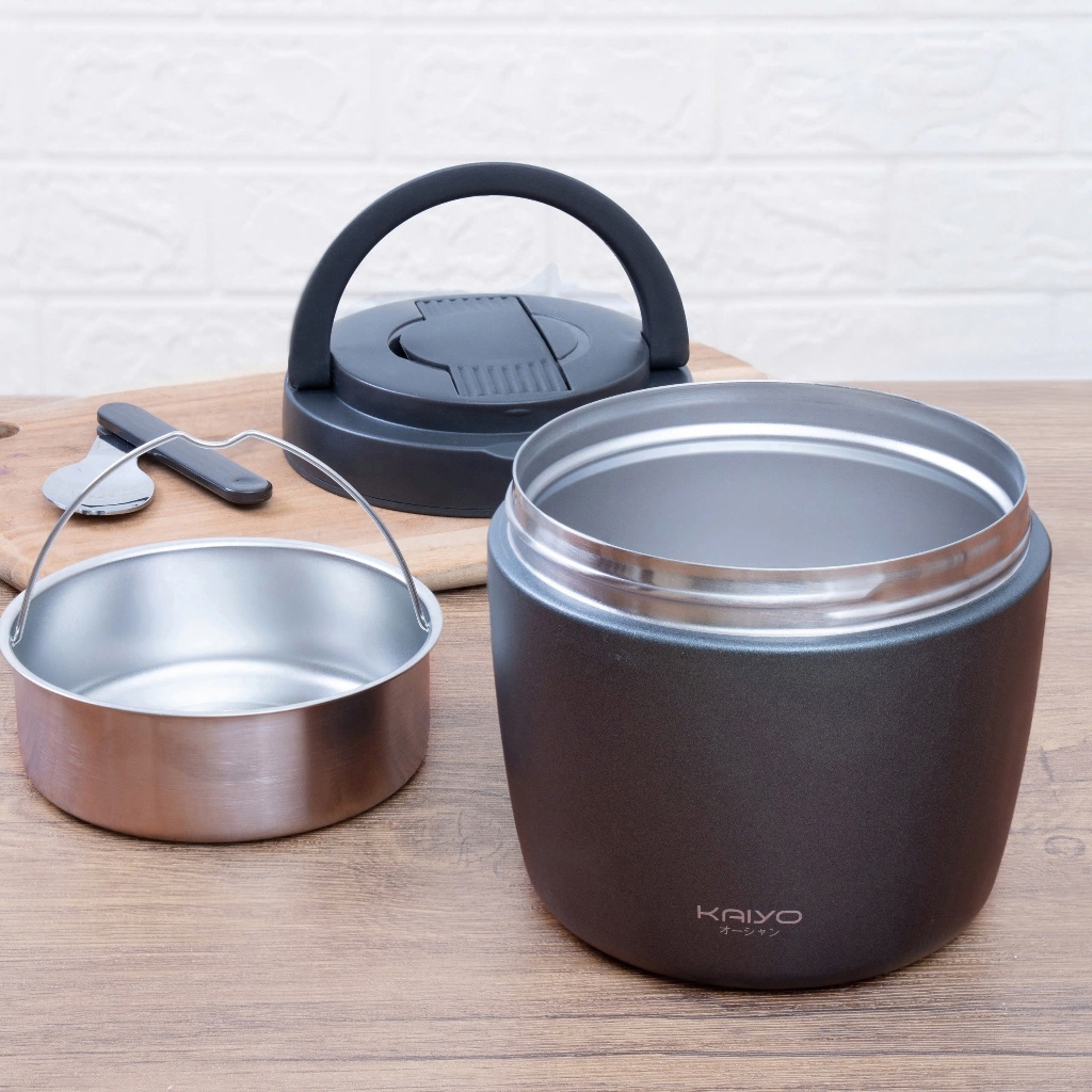 Cặp lồng giữ nhiệt 2 tầng inox 304 kèm 1 thìa inox gấp gọn, có quai xách rất tiện mang cơm canh, cháo, phở 1 lít
