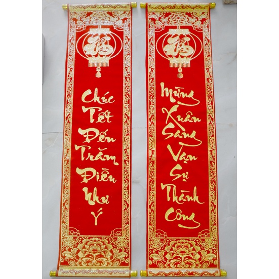 Cặp liễn nhung câu đối đỏ trang trí-Chúc Tết trăm diều như ý