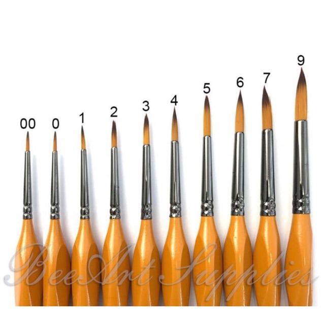 Cọ Vẽ Tỉa Hand Thân Vàng Đầu Tròn Full Size 000–10 – Lông Mảnh, Nét Chính Xác, Dễ Tô Màu Nước, Gouache - Beeart