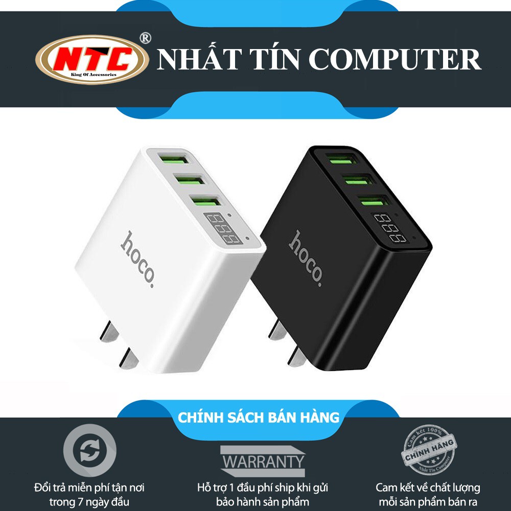 Cốc sạc 3 cổng Hoco C15 3.4A - màn hình LCD hiển thị điện áp - Nhất Tín Computer