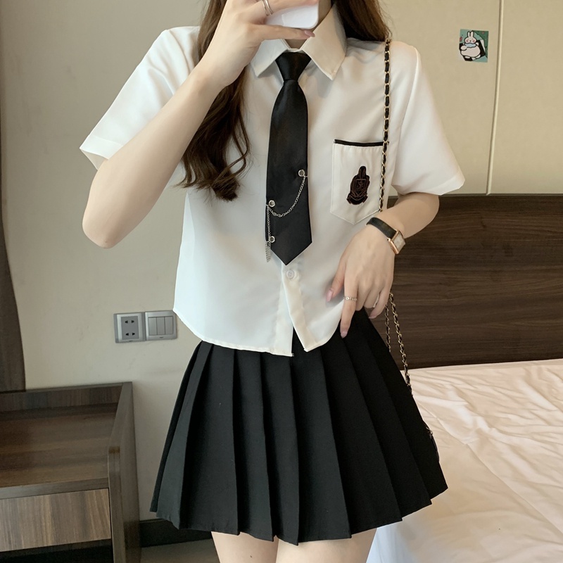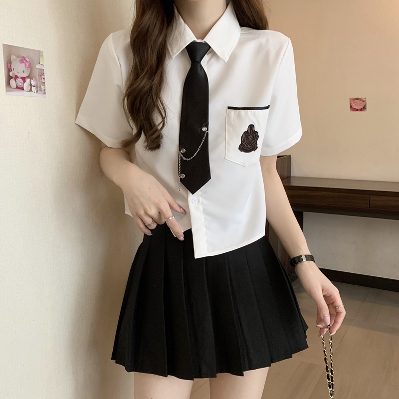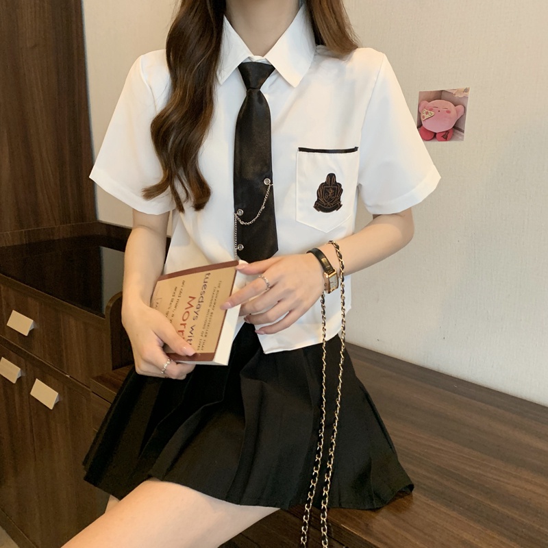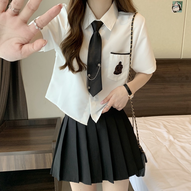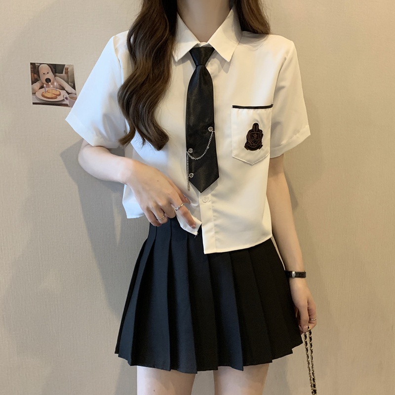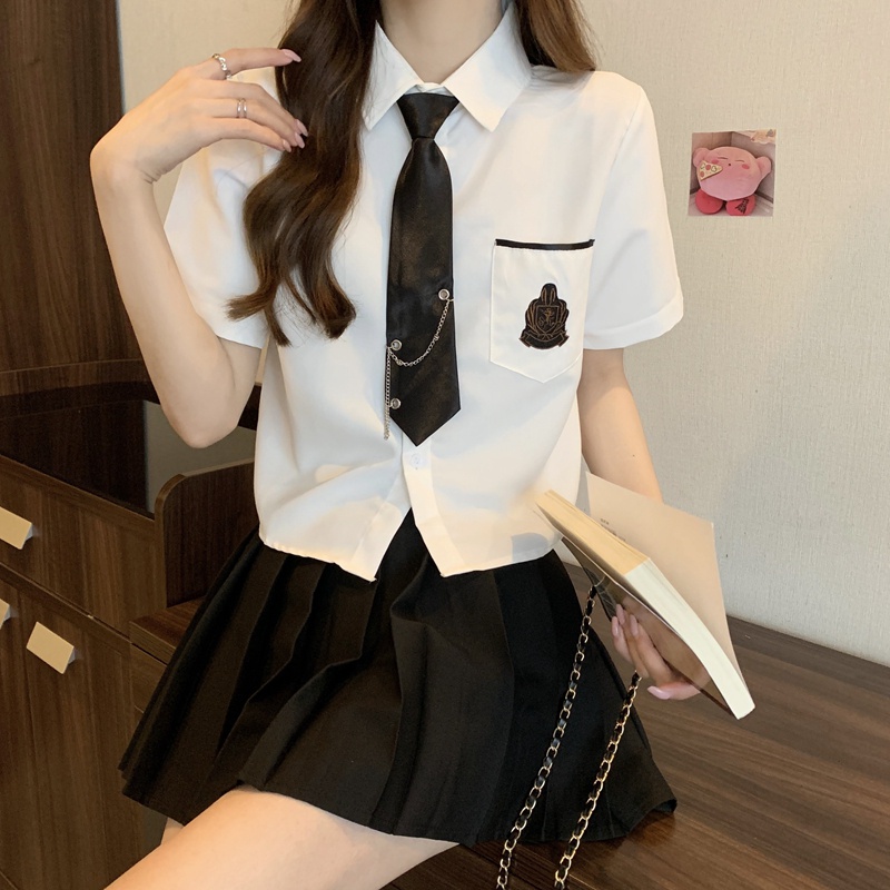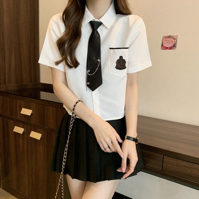 Cổ áo mùa hè màu trắng dáng rộng thông thường Áo sơ mi ngắn tay màu trơn