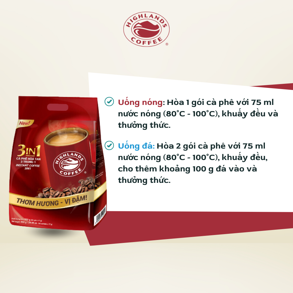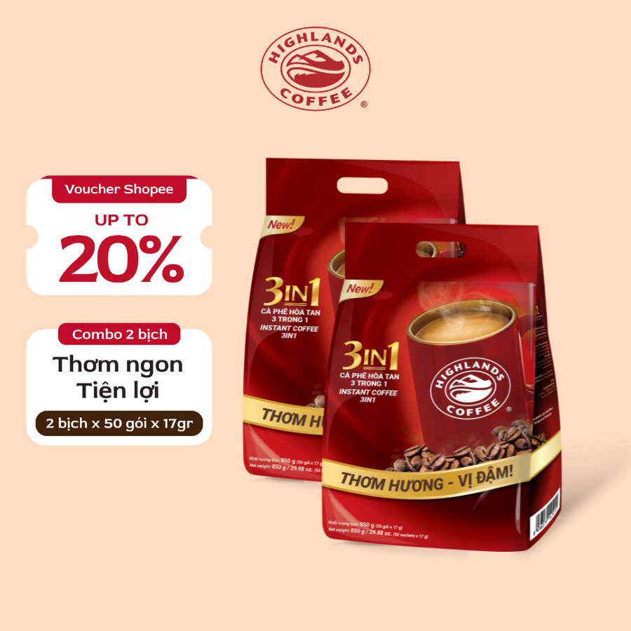 COMBO 2 CÀ PHÊ SỮA HOÀ TAN HIGHLANDS COFFEE 3IN1 - 50 GÓI