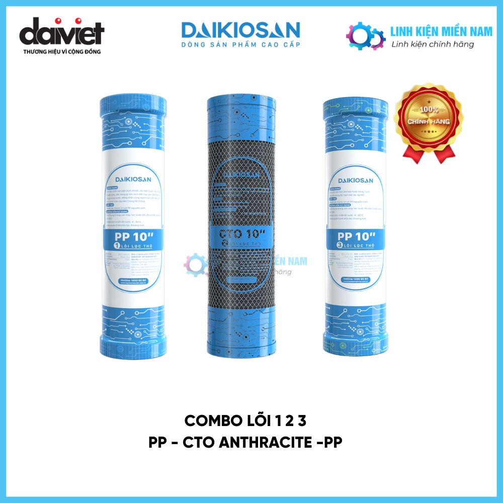COMBO lõi lọc nước số 123 Daikiosan - PP - CTO ANTHRACITE - PP