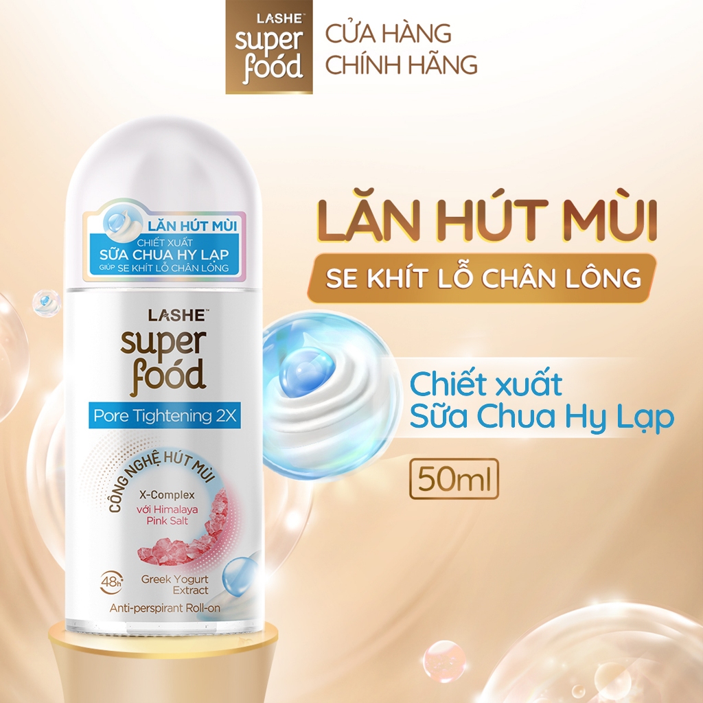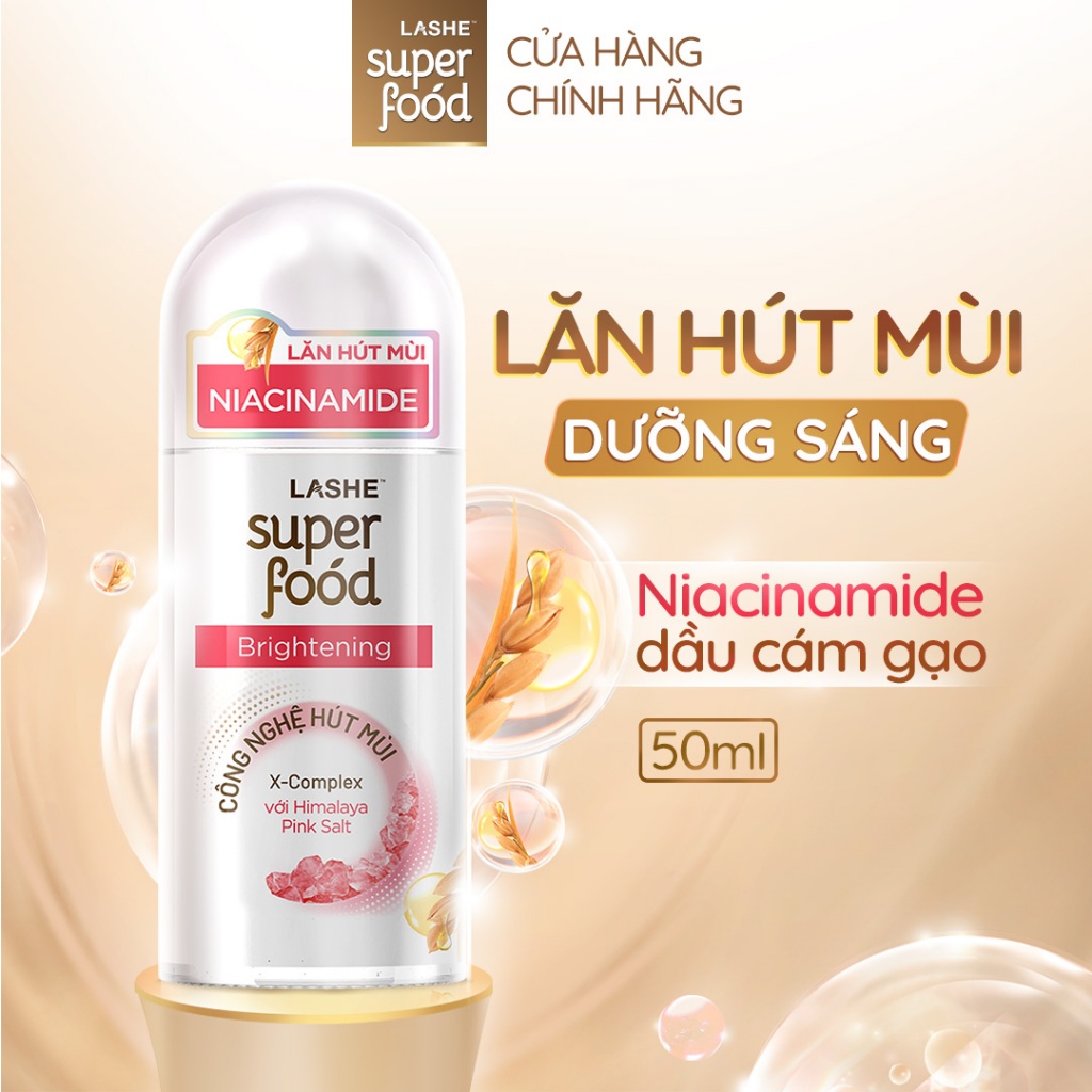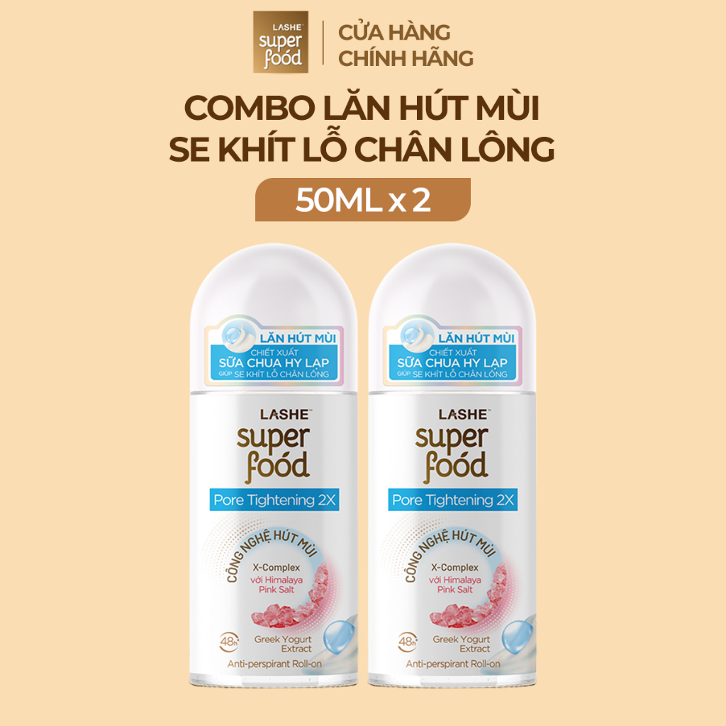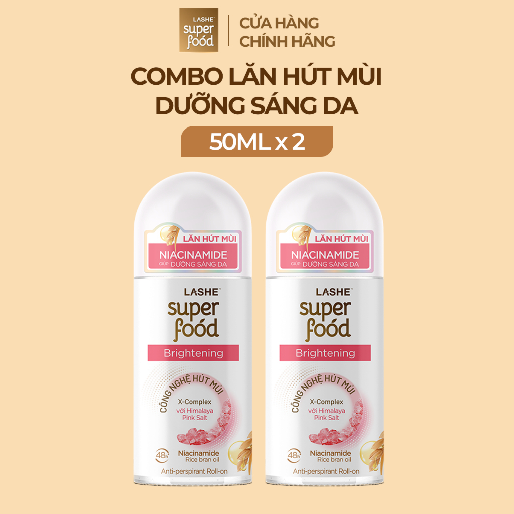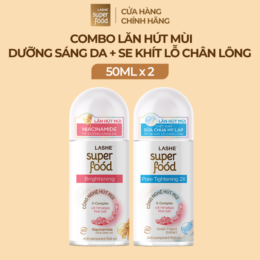 Combo 2 Lăn Hút Mùi LASHE SUPERFOOD Dưỡng Sáng Da / Se Khít Lỗ Chân Lông / Dưỡng Sáng & Kháng Ố 50MLx2