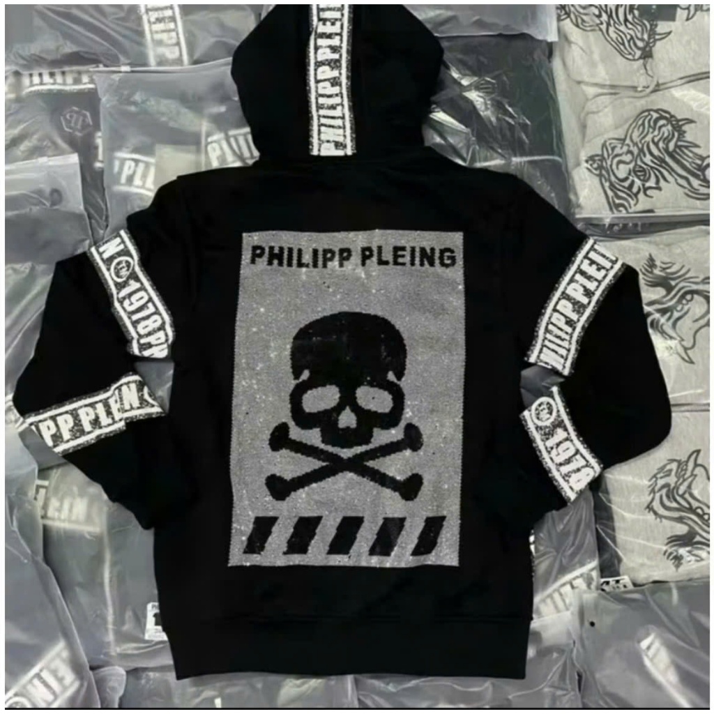 ÁO KHOÁC HOODIE PILIP ĐẦU NÂU IN SƠN KIM TUYẾN HOTTREND 2025 .ÁO NỈ qp KHÓA TAY HOTTREND MENS