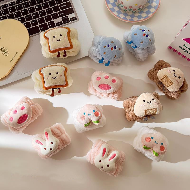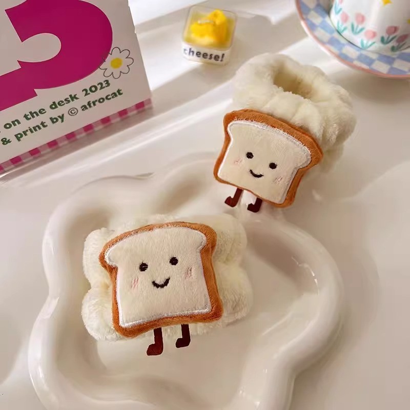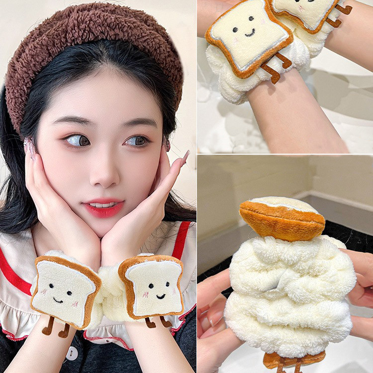 Ahellogirl Bánh Mì Nướng Phô Mai Dễ Thương Sang Trọng Ruột Lớn Băng Đô Rửa Mặt Dây Đeo Tay Chống Ẩm Rửa Mặt Dây Đeo Tay