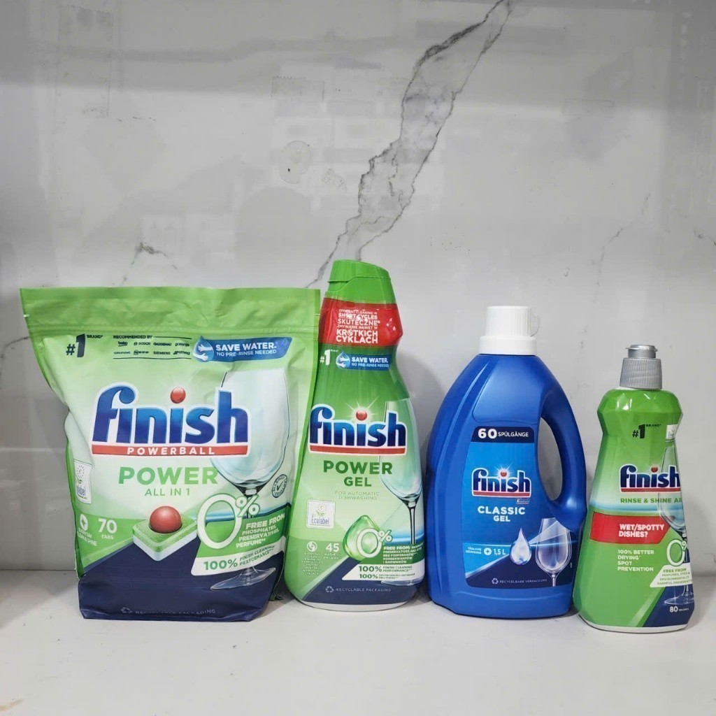 Gel rửa bát Finish Eco 0% hữu cơ 900ml chính hãng dùng cho máy rửa bát làm sạch làm, đánh bóng, sấy khô và mềm nước