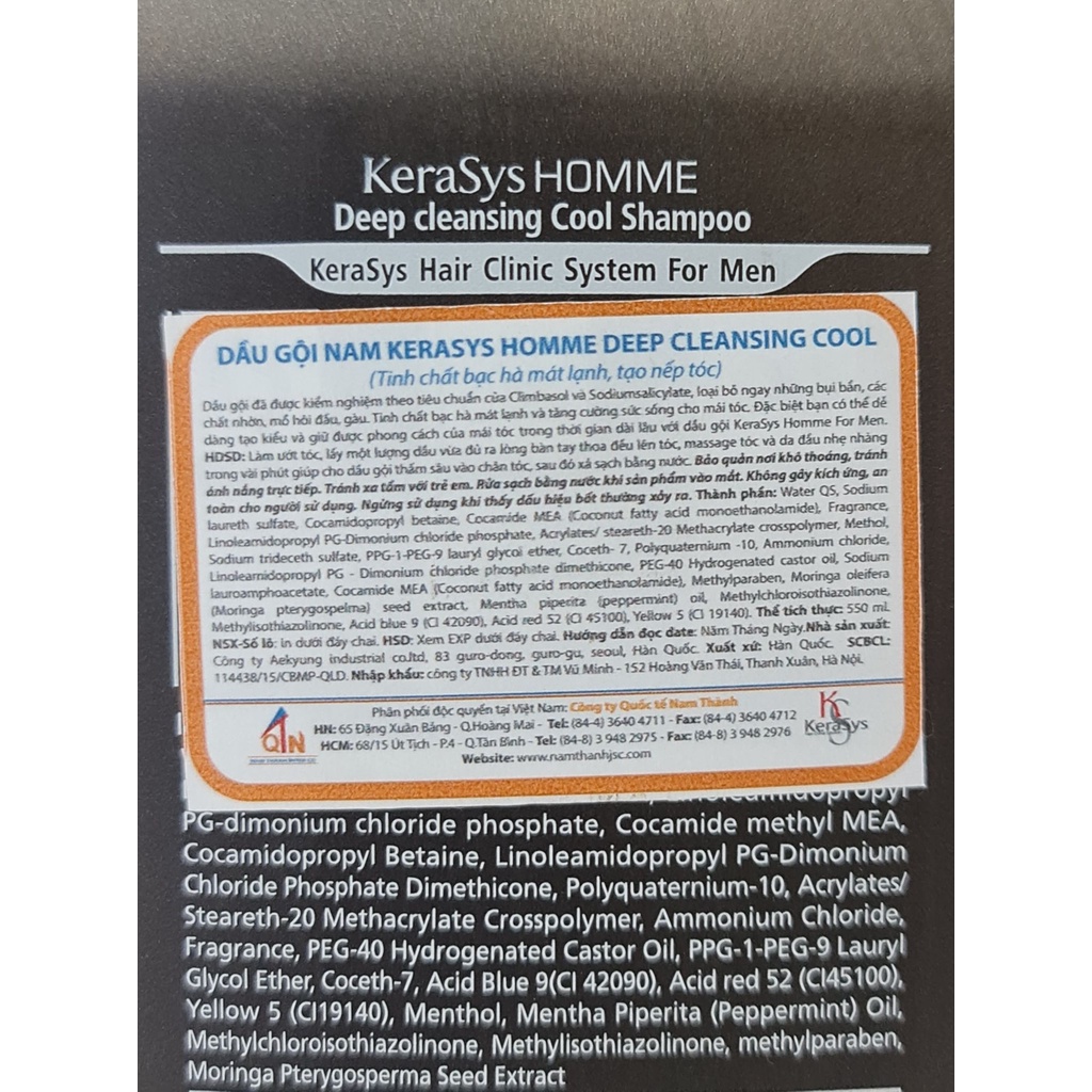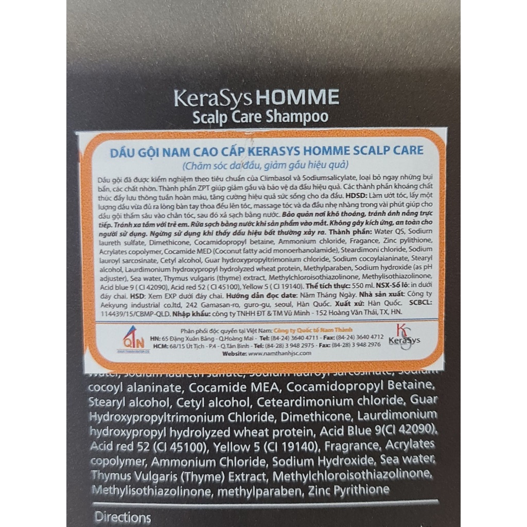 Dầu Gội Cho Nam Kerasys Homme Shampoo 550ml Hàn Quốc