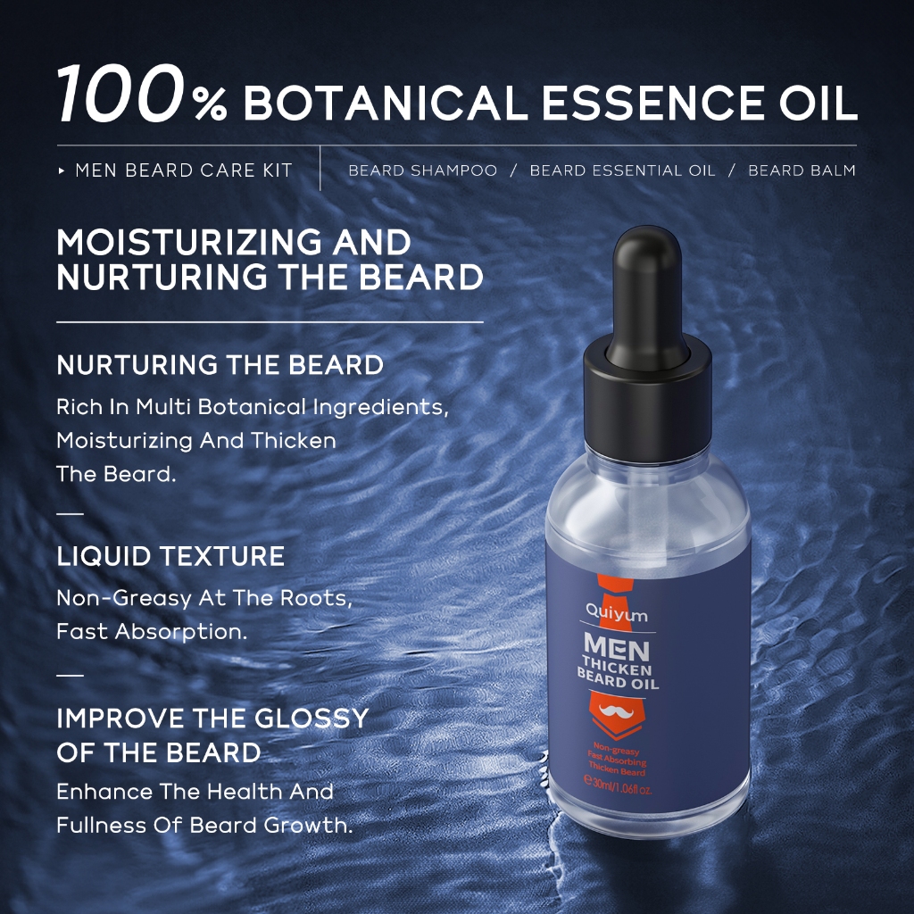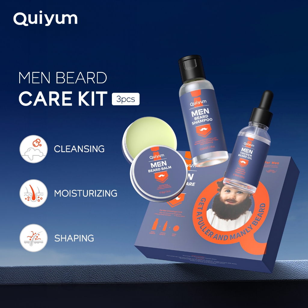 Quiyum Men Beard Care Kit Làm Dày Dầu Gội Làm Sạch Chải Lông Râu Balm