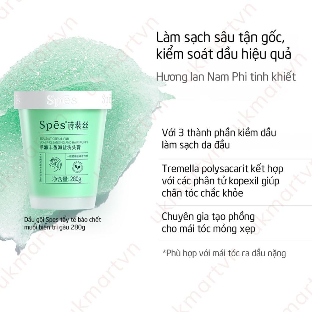 Dầu gội tẩy tế bào chết SPES tinh chất muối biển sạch gàu da đầu dưỡng ẩm kiềm dầu và phồng tóc 280g