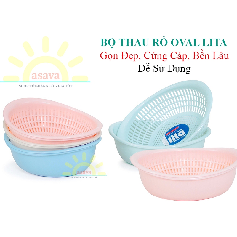 Bộ Thau Rổ Oval Rửa Rau, Ráo Nước Lita Nhựa Hiệp Thành-Cứng Cáp, Gọn Đẹp, Tiện Dụng