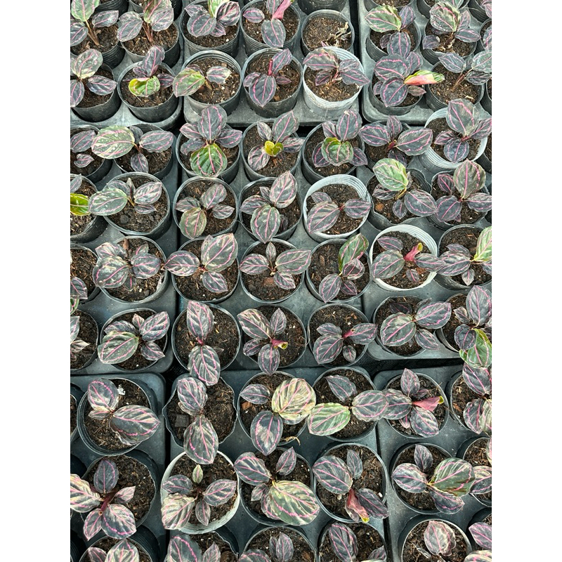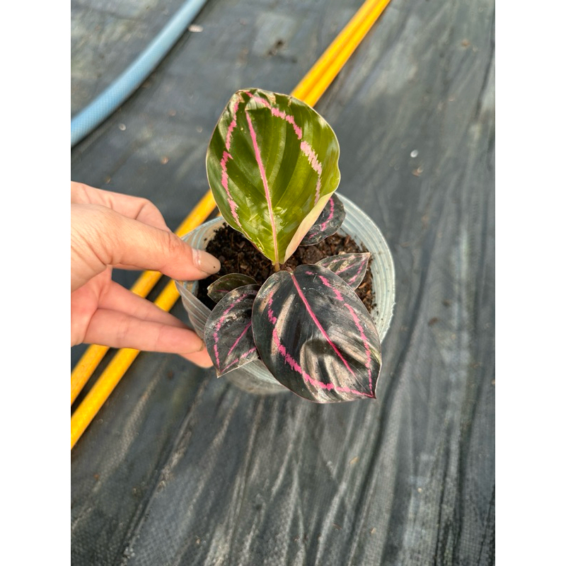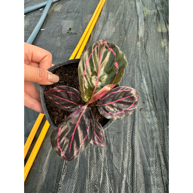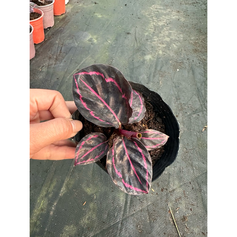 Calathea roseopicta chậu mềm đuôi công tím chậu cây giống đang bung lá khoẻ đẹp