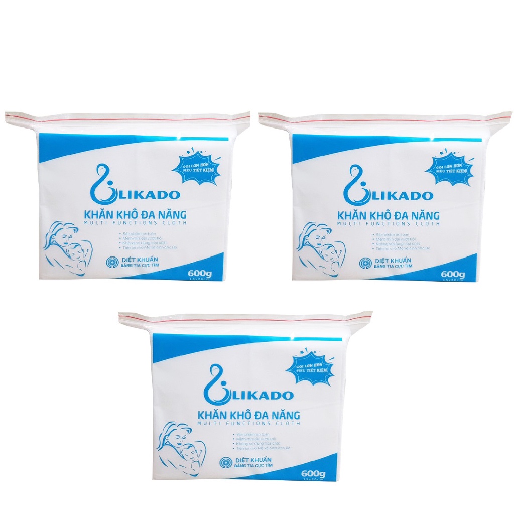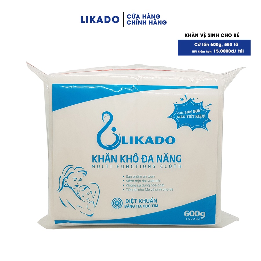 Khăn khô đa năng LIKADO cho bé 600g kích thước 15x20 (1GÓI)