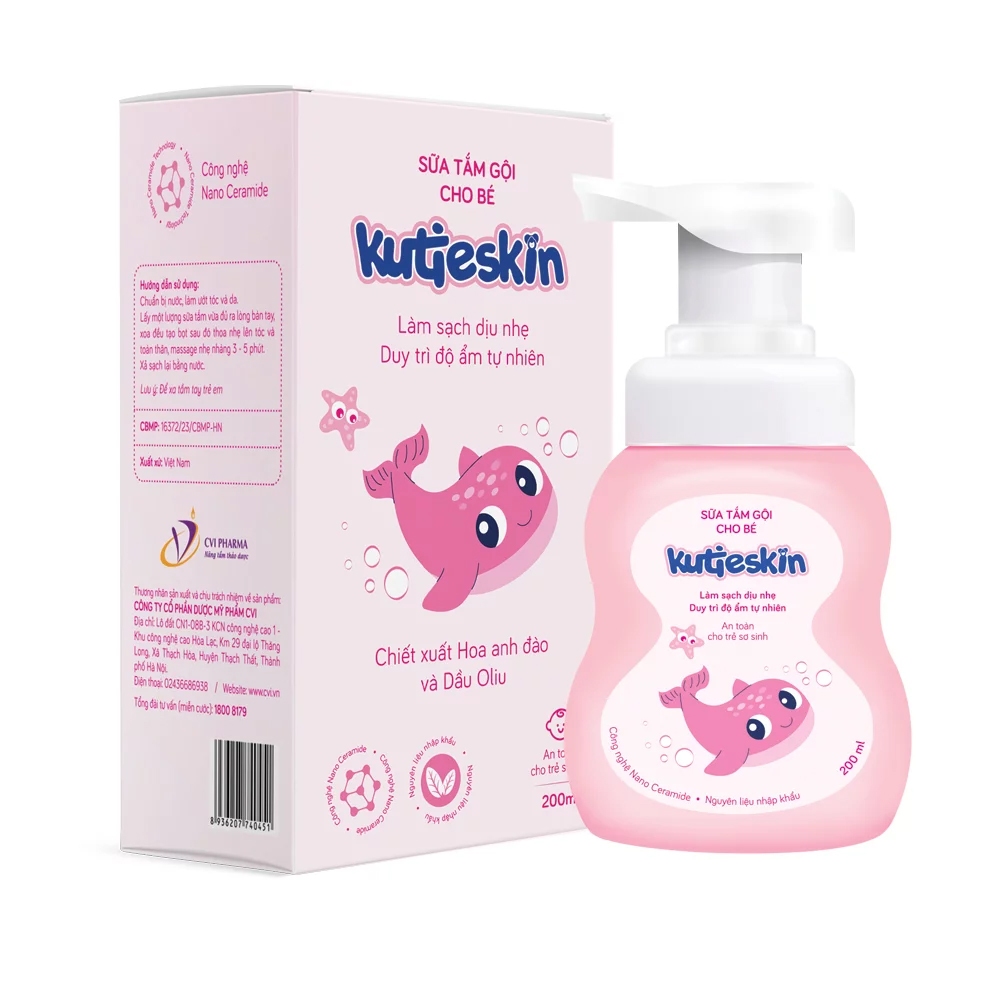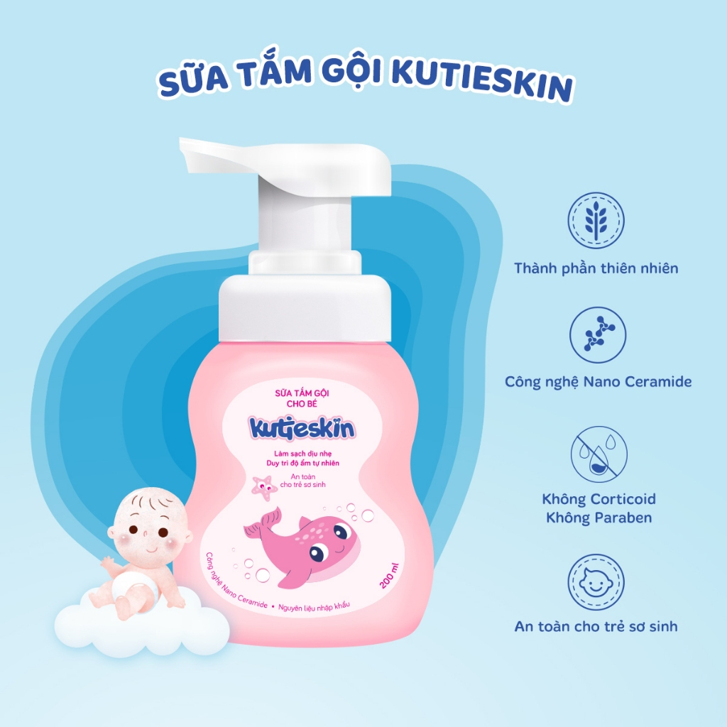 Sữa tắm gội cho bé Kutieskin sạch dịu nhẹ, ngăn rôm sảy, mẩn ngứa, mụn nhọt, hăm, viêm da, an toàn trẻ sơ sinh [kutie]