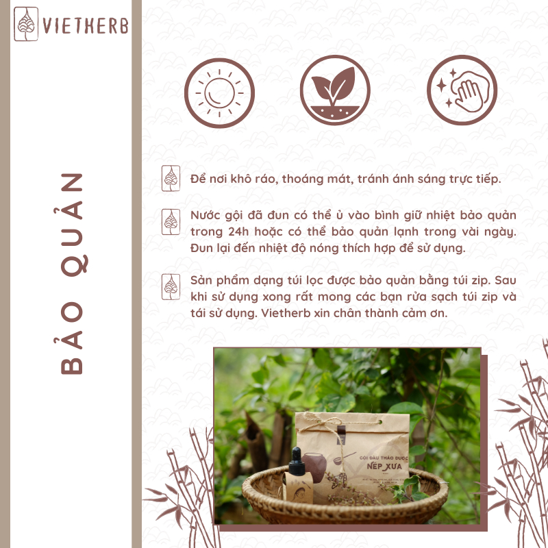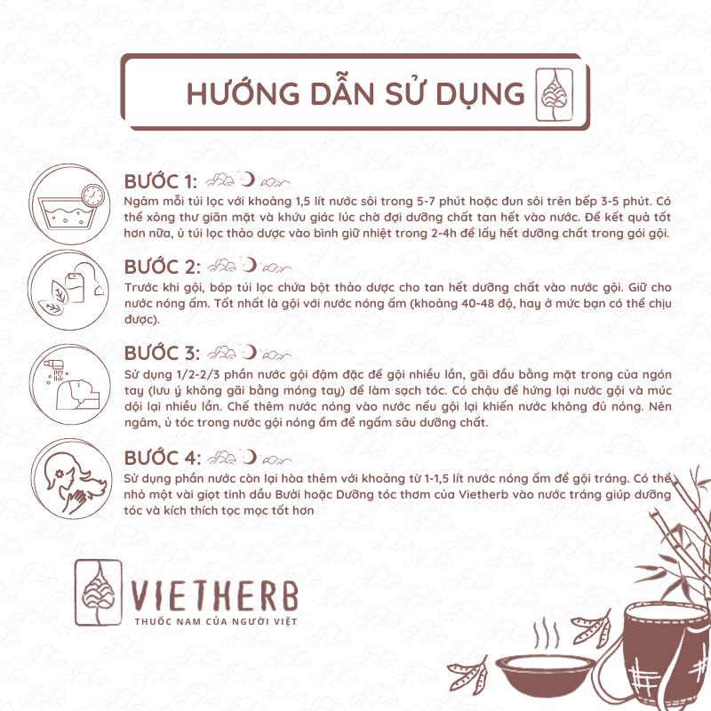 Gội đầu thảo dược Nếp Xưa VIETHERB 20gr túi lọc, làm sạch gàu và dưỡng tóc, hương thảo dược