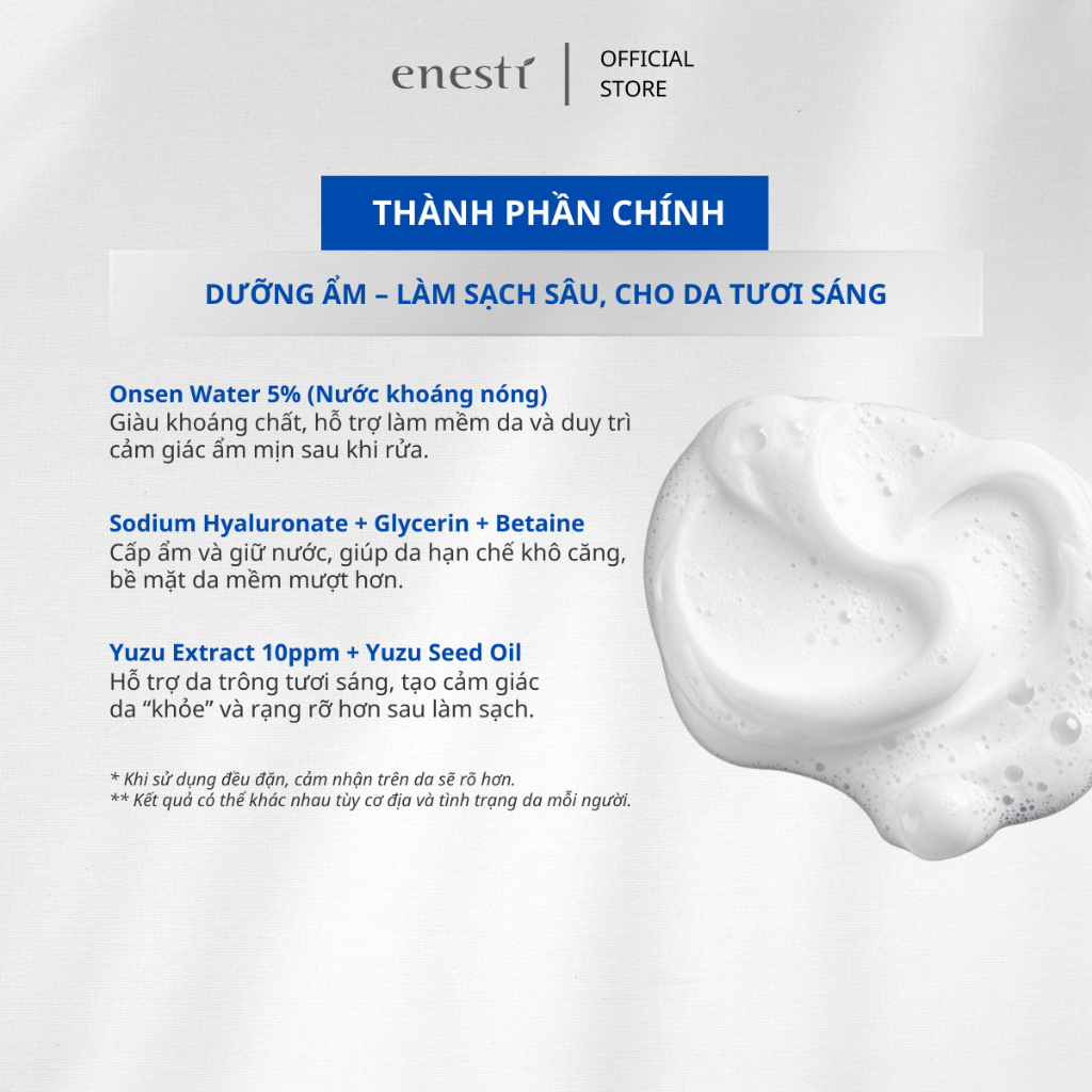 Sữa rửa mặt Enesti Suansu Nước Khoáng Nóng & Chiết Xuất Quýt Yuzu 140ML tạo bọt dưỡng sáng, sạch sâu