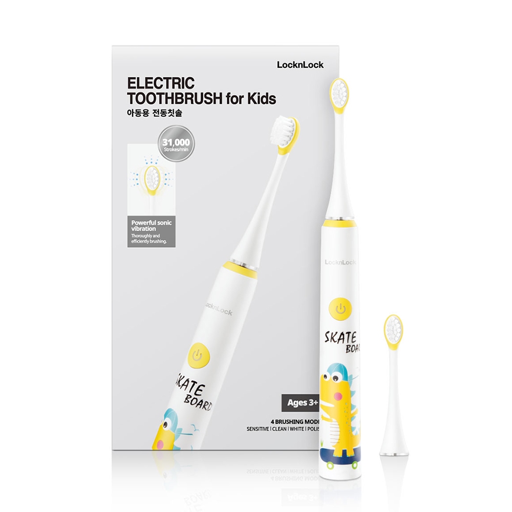 Bàn chải đánh răng điện cho bé LocknLock ENR226WHT 1.5W - Hàng chính hãng, chống nước - JoyMall