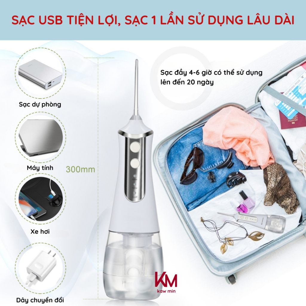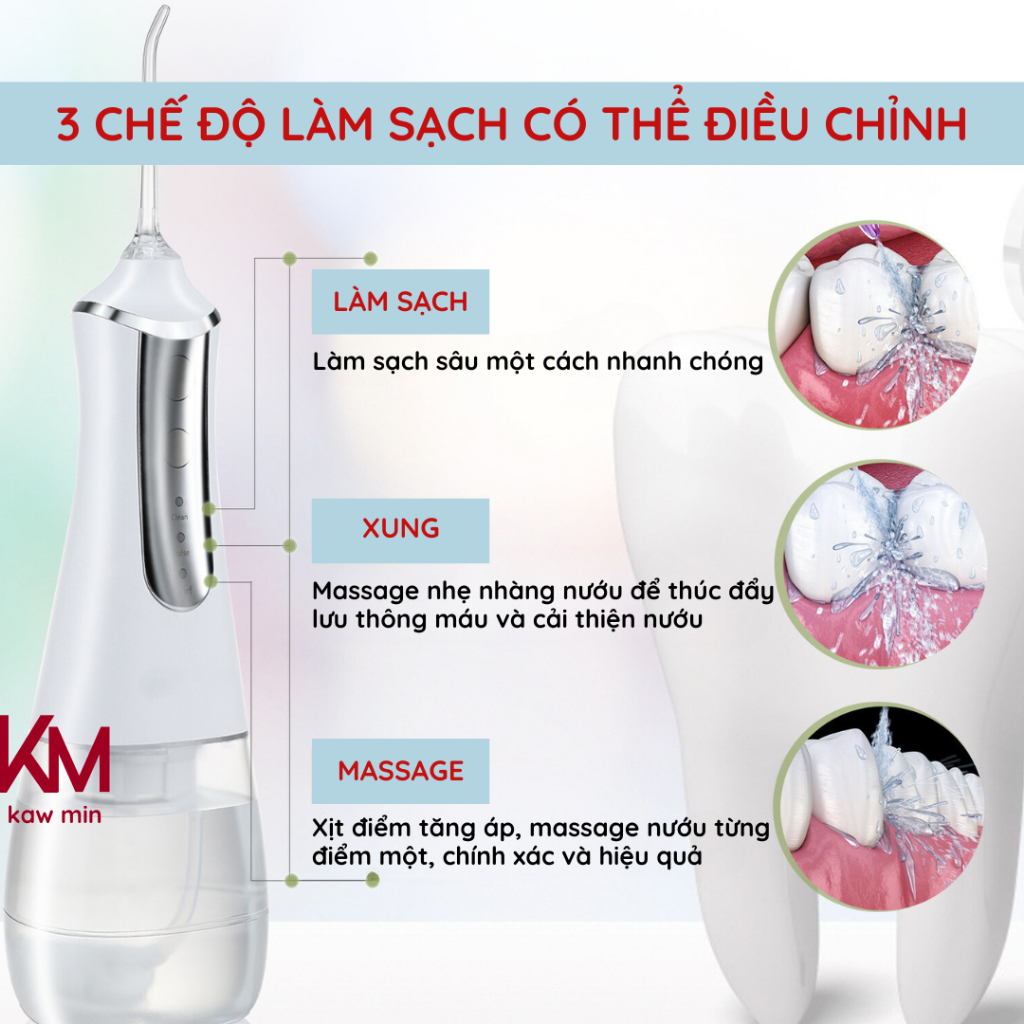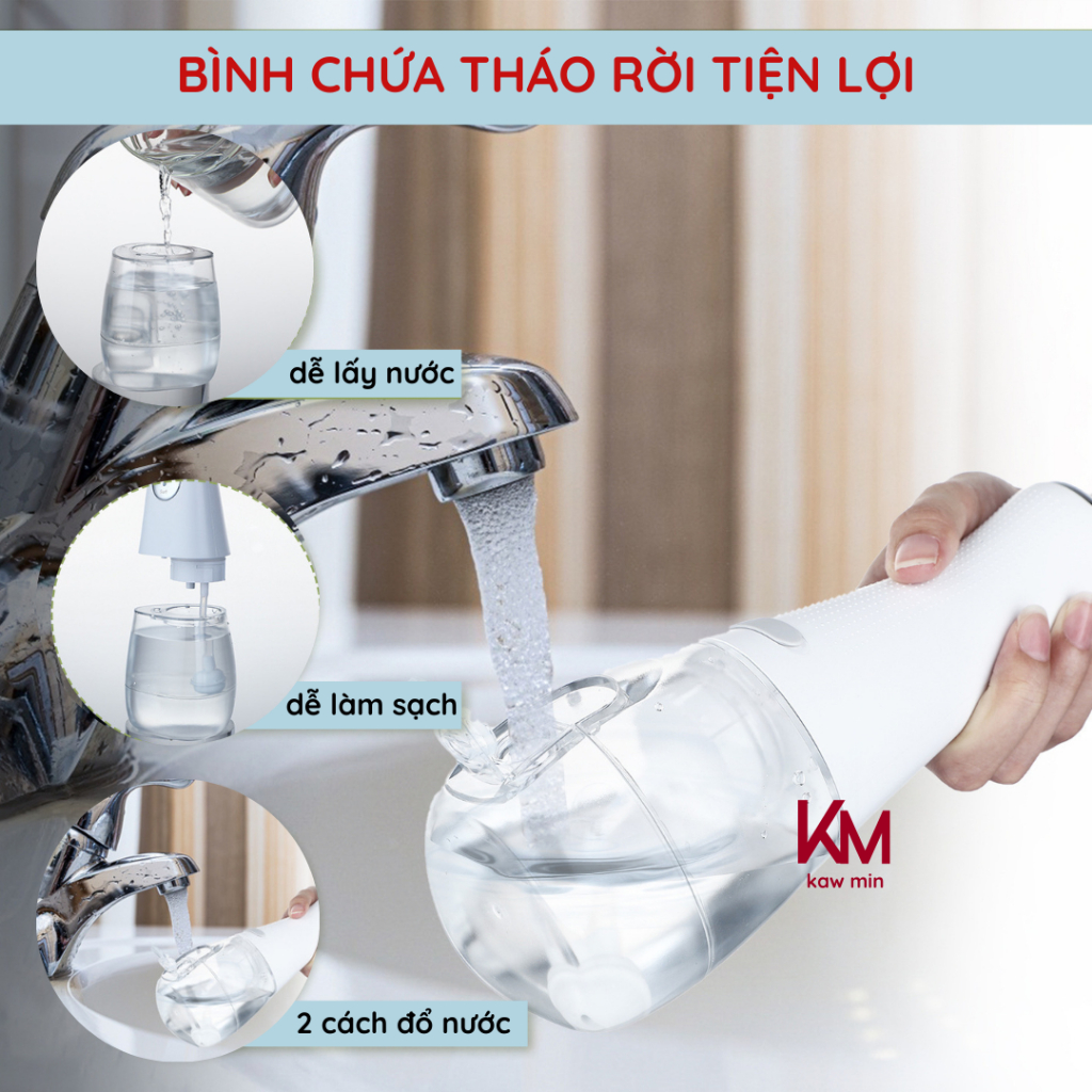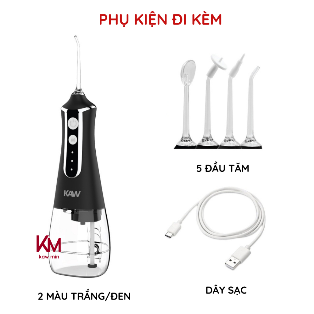 Máy Tăm Nước KAW 386F - 3 Chế Độ Phun, Dung Tích 300ml Tặng Kèm 5 Đầu Vòi Phun