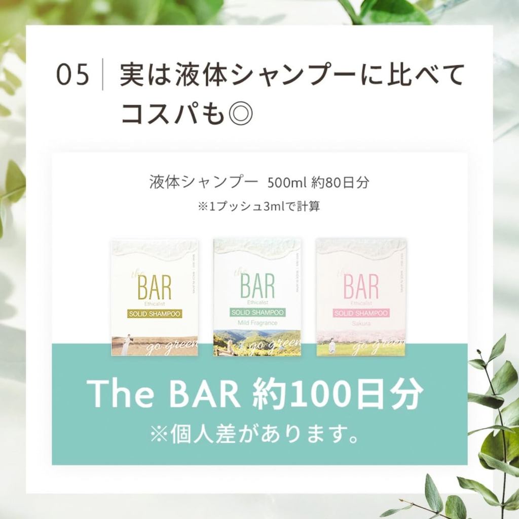TheBAR Organic Solid Shampoo Bar - Low Irritation, Lathering Formula with Functional Ingredients, High Concentration, Floral Scent, Made in Japan, with Foaming Net