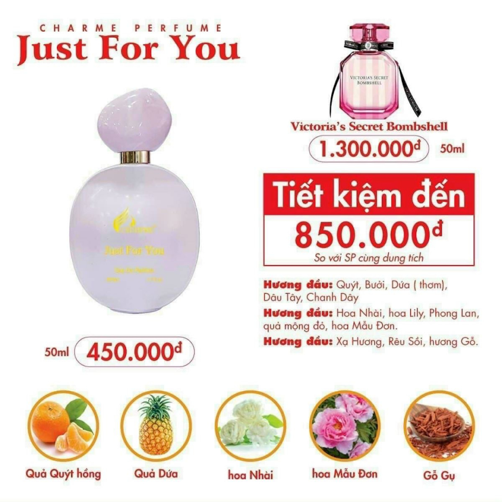 Nước Hoa Nữ Charme Just For You 50ml lãng mạn và tinh nghịch cho nàng thêm tự tin