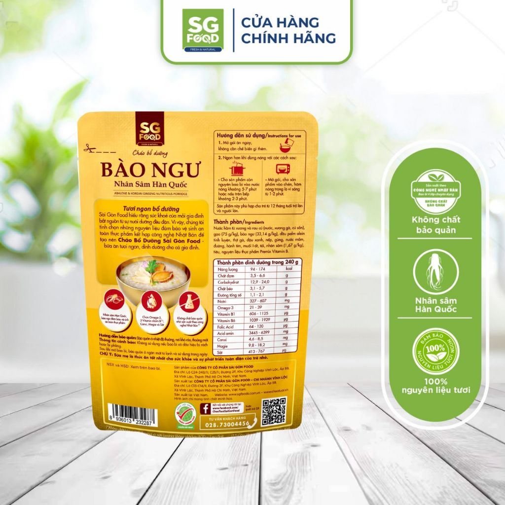 Cháo bổ dưỡng Ăn Liền Bào ngư Nhân sâm Hàn Quốc SGFood 240g