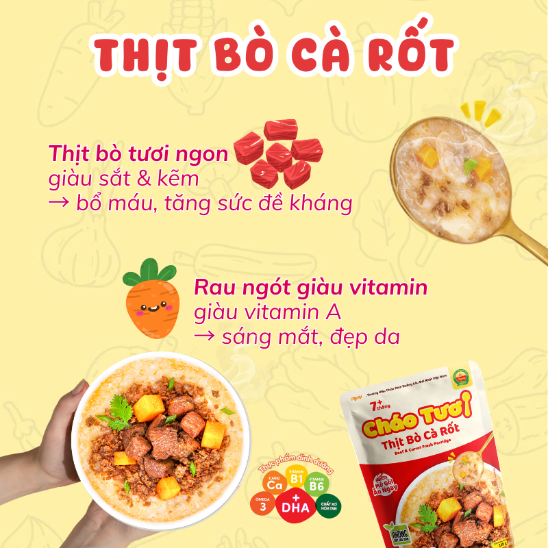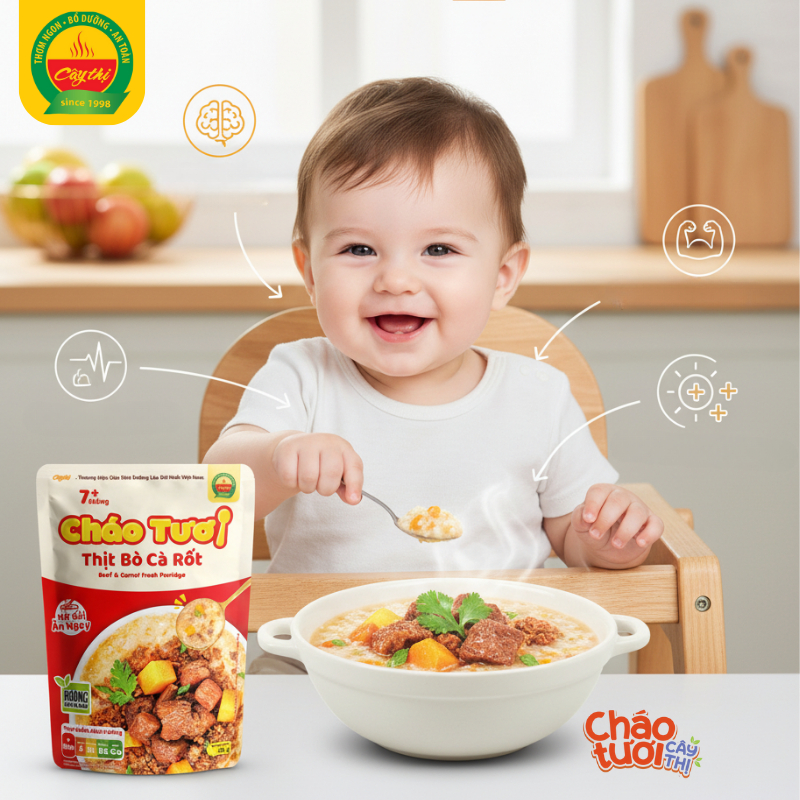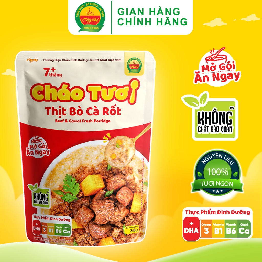 Cháo Tươi Cây Thị Thịt Bò Cà Rốt - Mở gói ăn ngay 240g