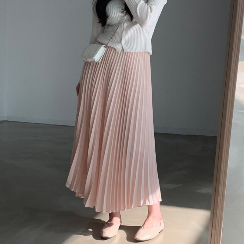 Chân váy BH chữ A lưng cao xếp ly màu sắc thời trang phong cách Hàn Quốc cho nữ