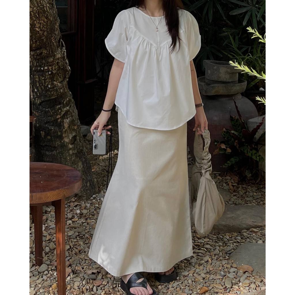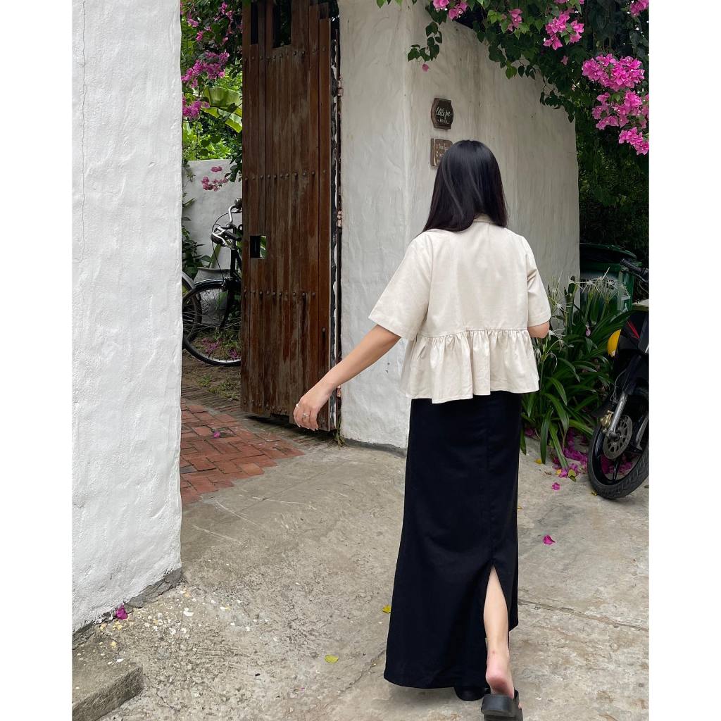 Chân váy dài linen, Chân váy linen dáng dài đuôi cá nhẹ