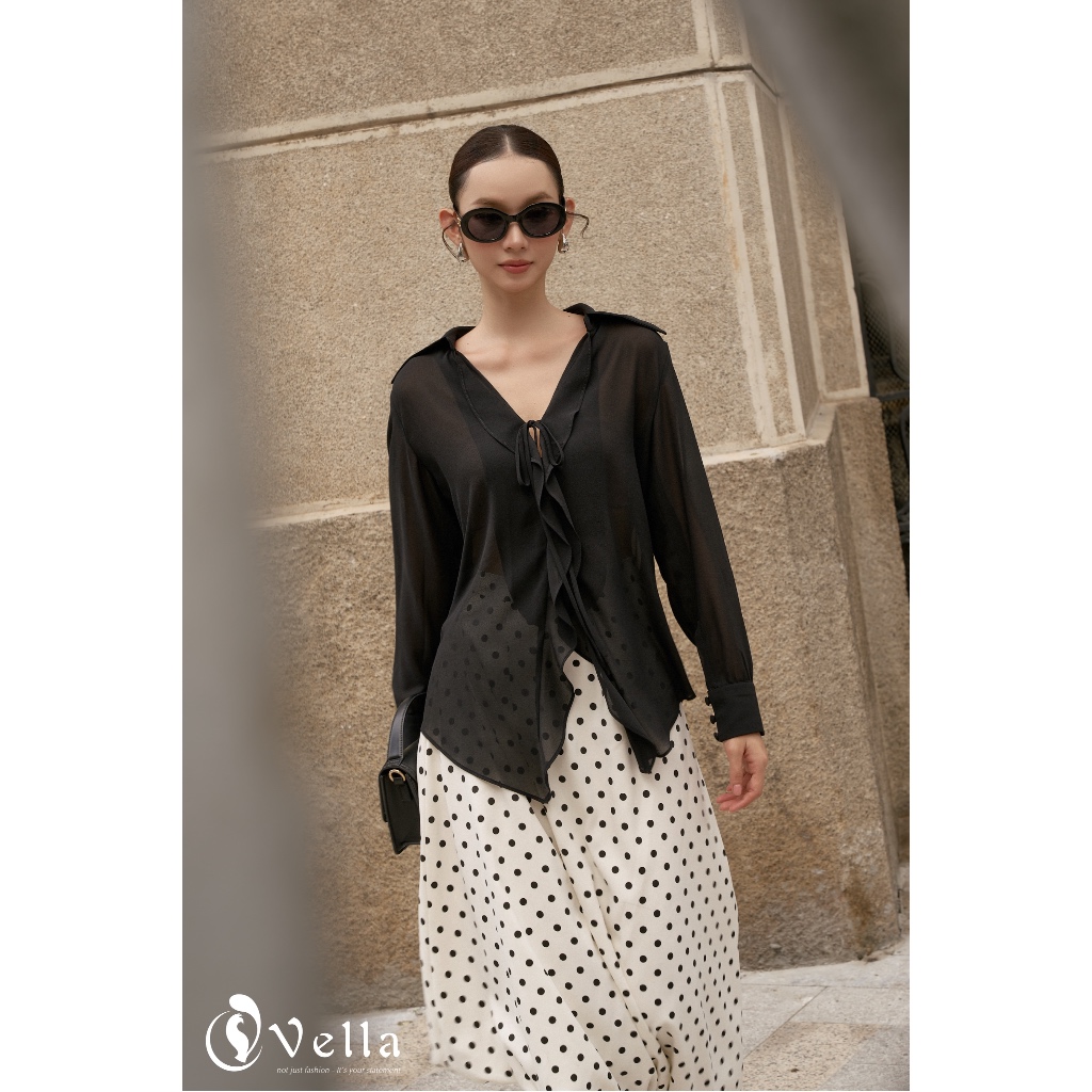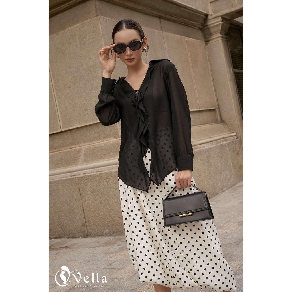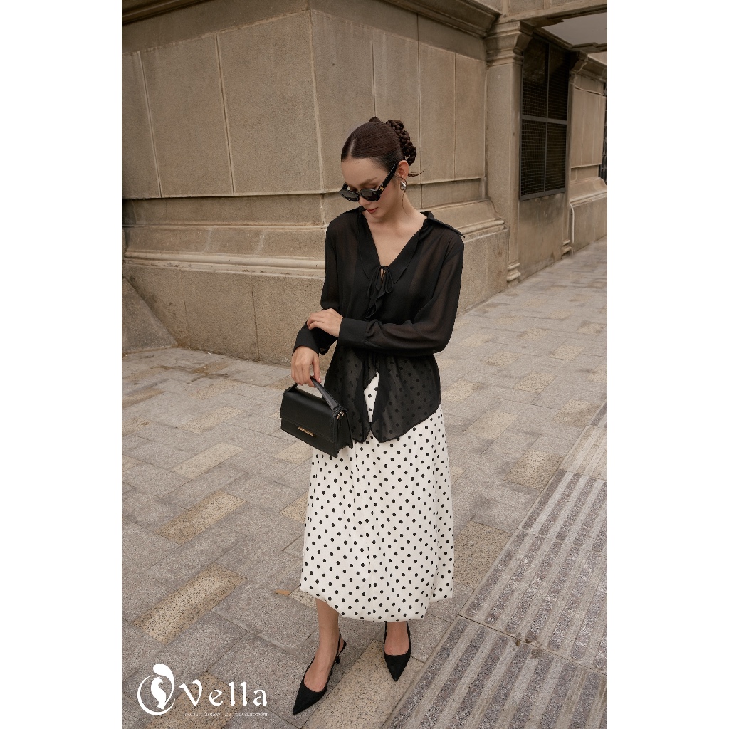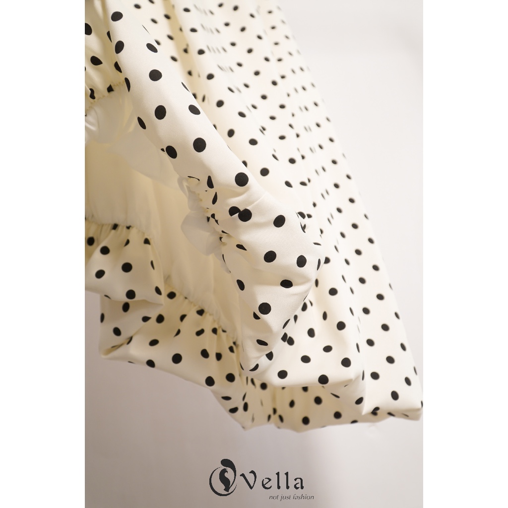 Chân váy dáng bí ngô chấm bi | Váy A-line dài ngang bắp chân vintage nữ tính Vella Fashion VV25066