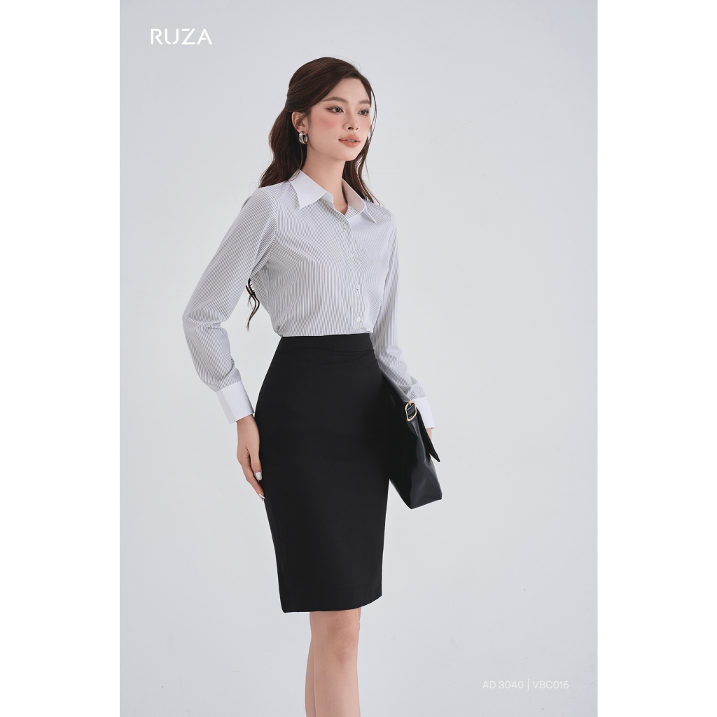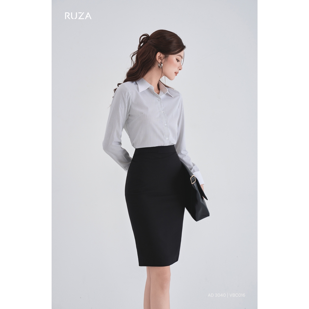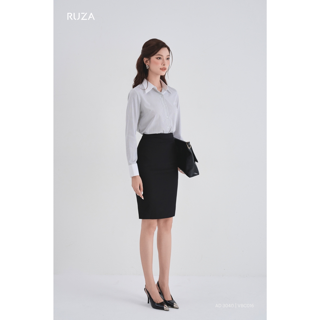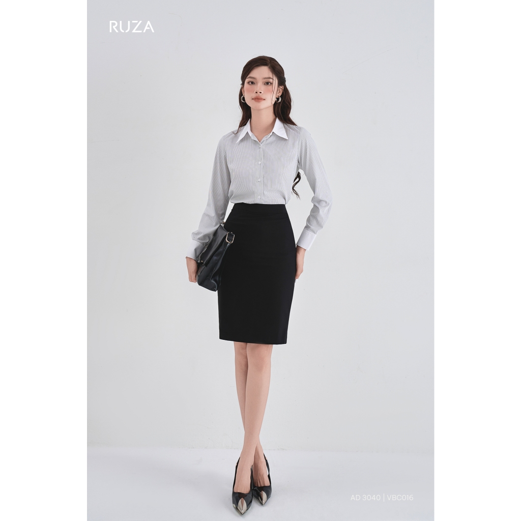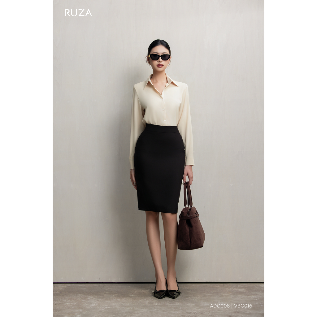 Chân váy nữ bút chì lụa lạnh RUZA kiểu dáng công sở màu đen thời trang VBC016 017
