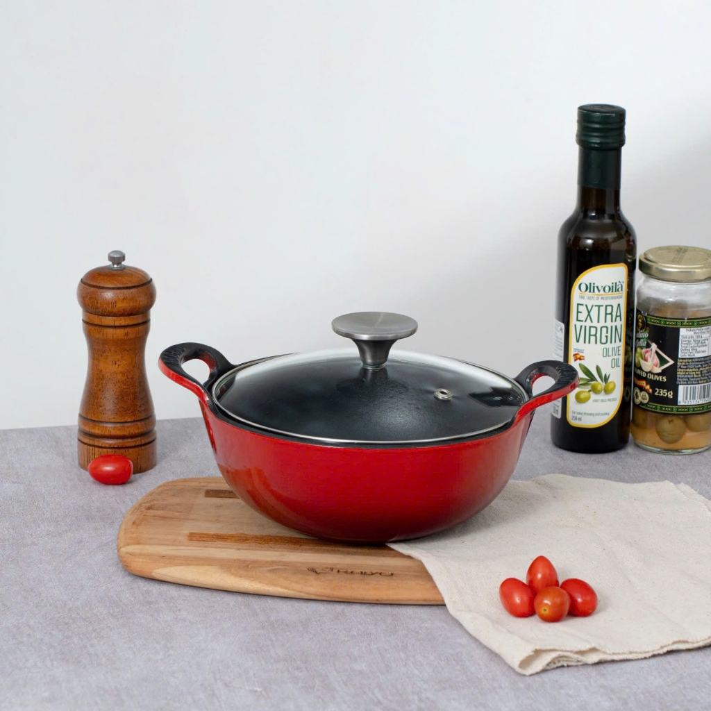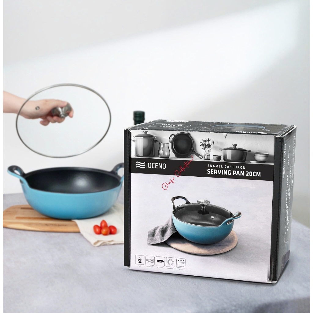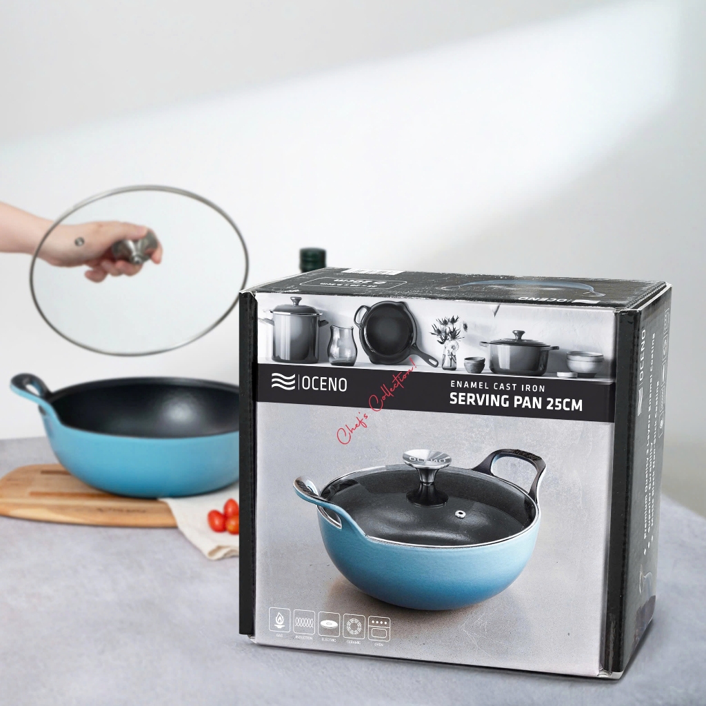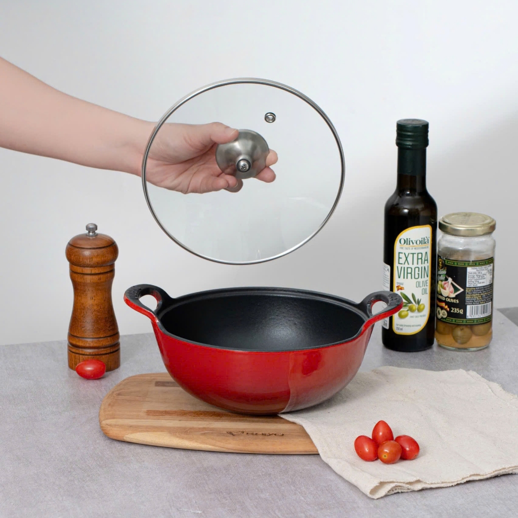 Chảo Gang Sâu Lòng Oceno Phủ Men Gốm Có Vung Kính - LARVA STORE