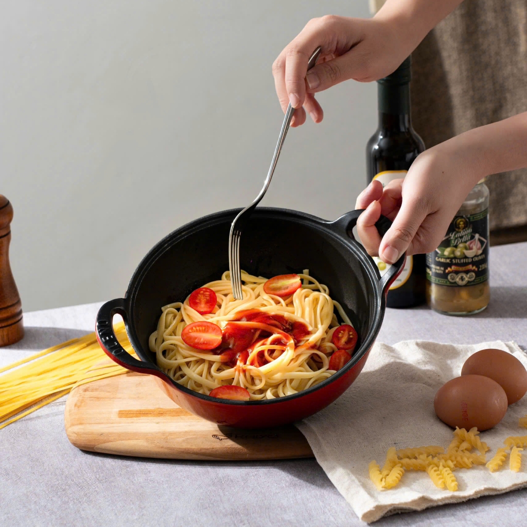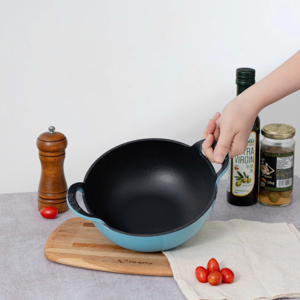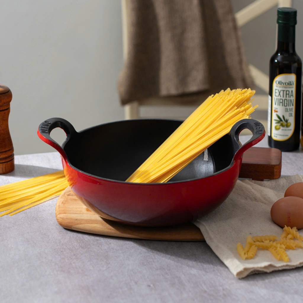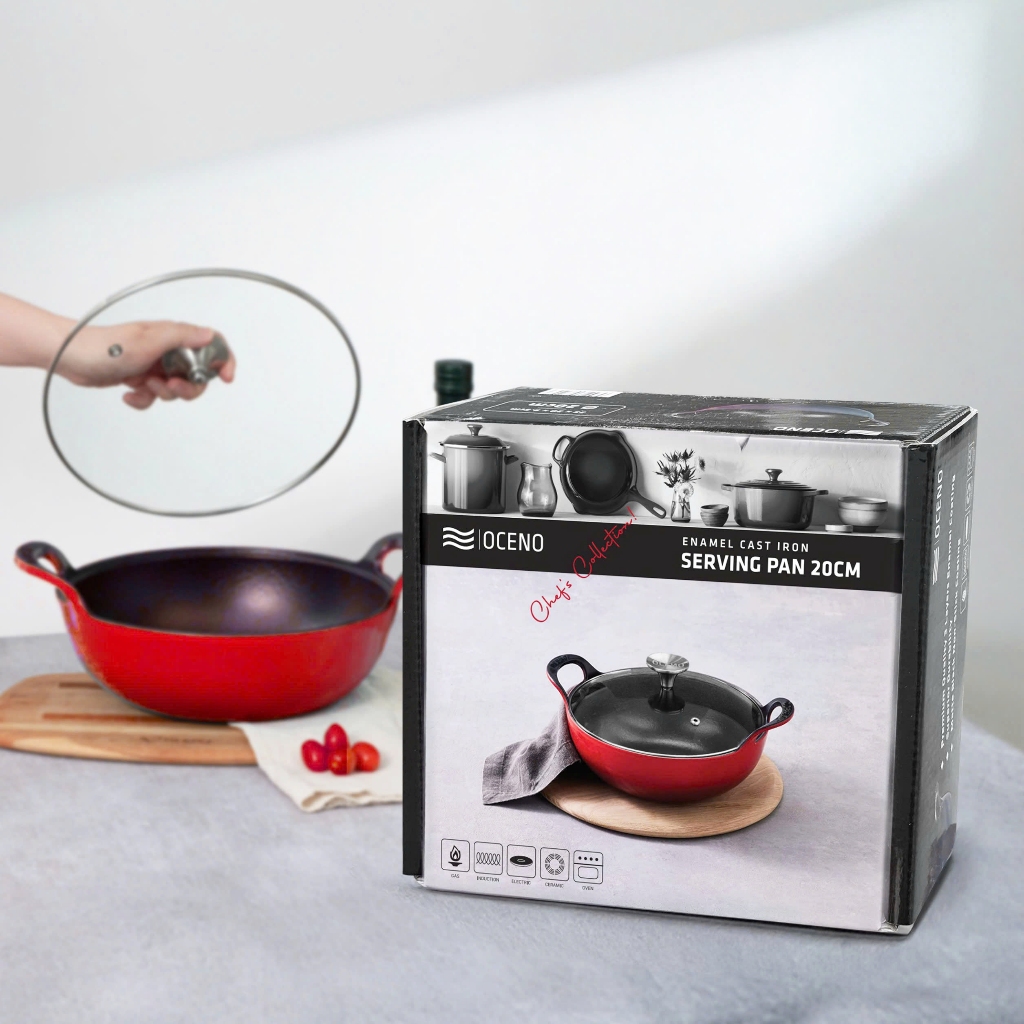 Chảo Gang Sâu Lòng Oceno Phủ Men Gốm Có Vung Kính - LARVA STORE