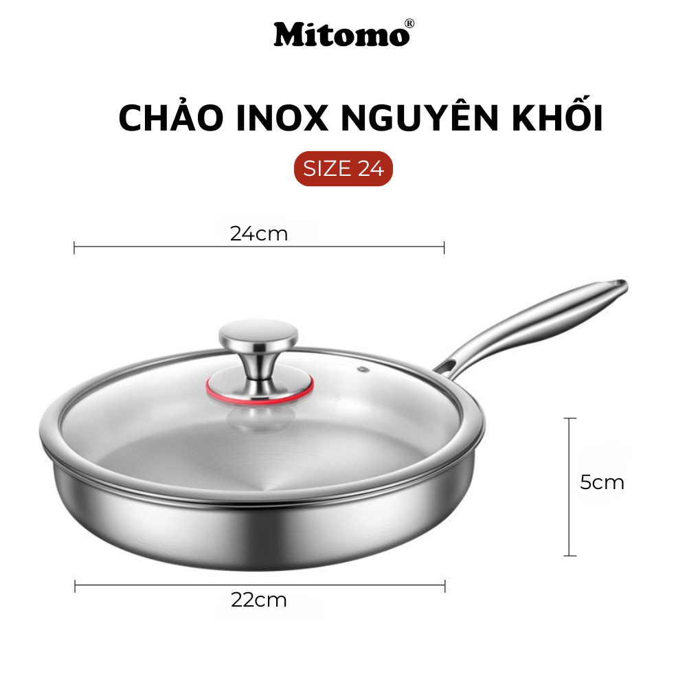Chảo Inox 316 Cao Cấp Mitomo, Chống Dính Tự Nhiên, Thiết Kế Sang Trọng, Chuẩn Châu Âu, Dùng Mọi Loại Bếp - Chính hãng
