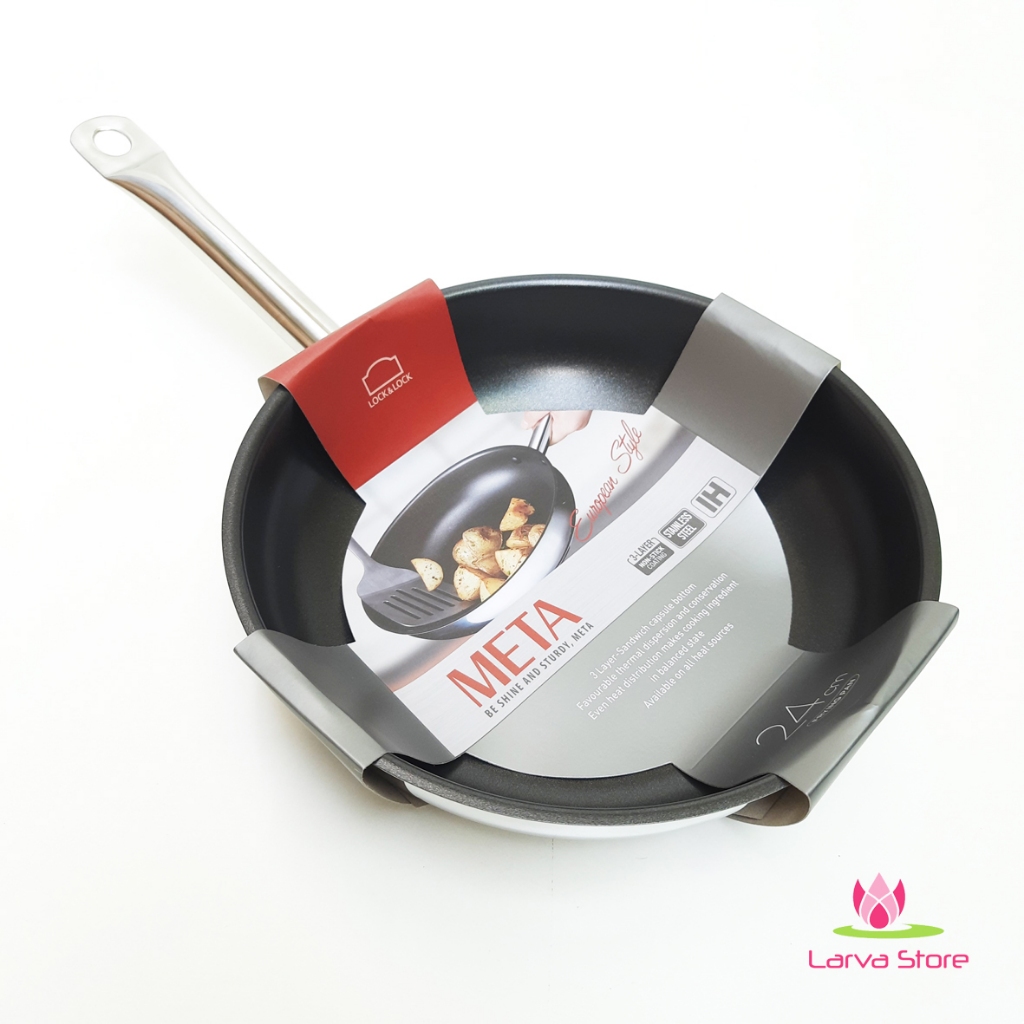 Chảo inox 304 Meta Lock&Lock LTP1283 28cm / LTP1243 24cm / LTP1203 20cm Chống dính 3 lớp (đáy từ) - Larva Store