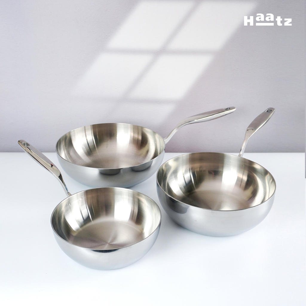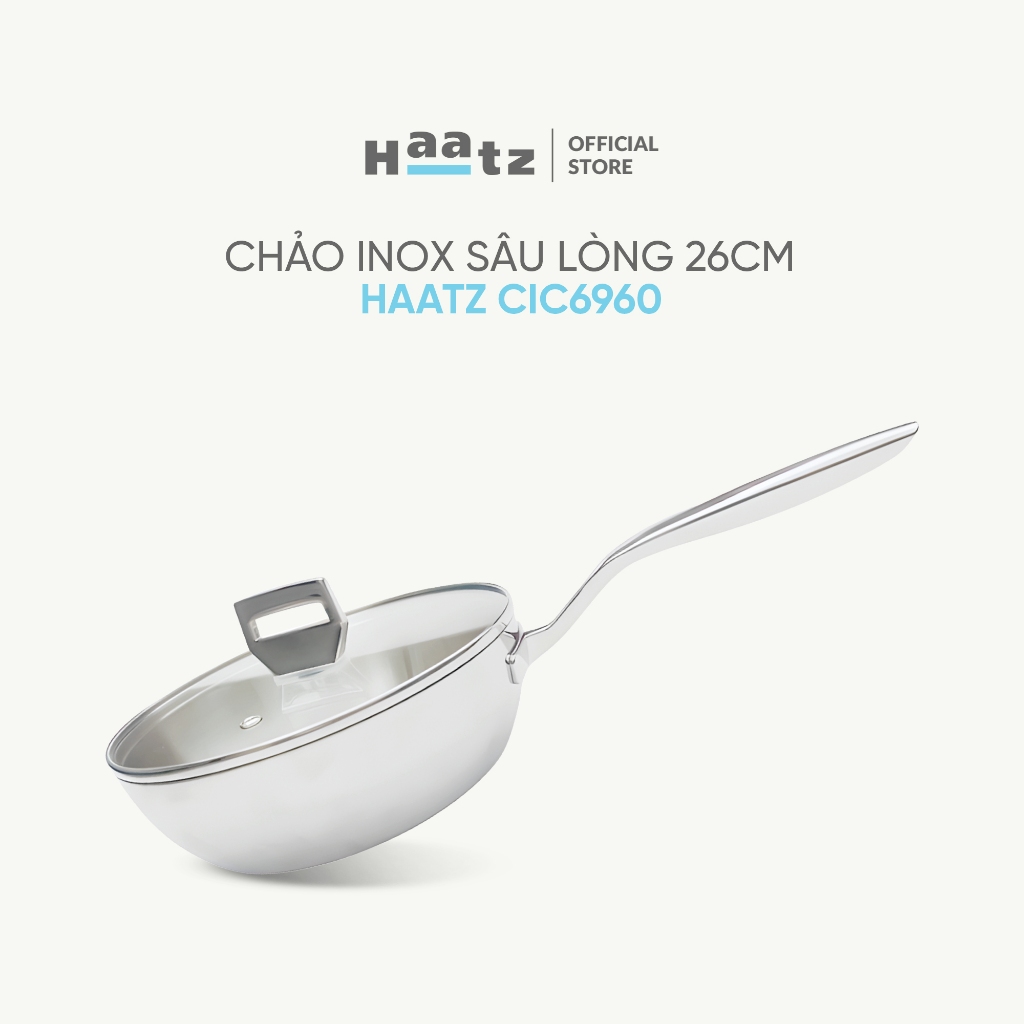 Chảo sâu lòng Inox 316 liền khối Haatz đáy 3 lớp sâu lòng vung kính dùng mọi loại bếp