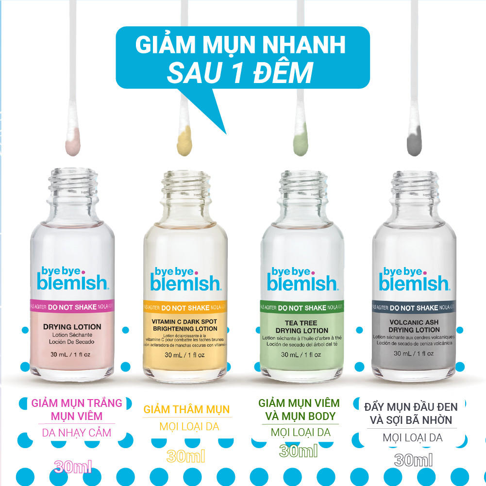 Chấm Mụn 2 Lớp Giảm Mụn Nhanh Sau 1 Đêm Bye Bye Blemish Drying Lotion 30ml Cho Tất Cả Loại Mụn