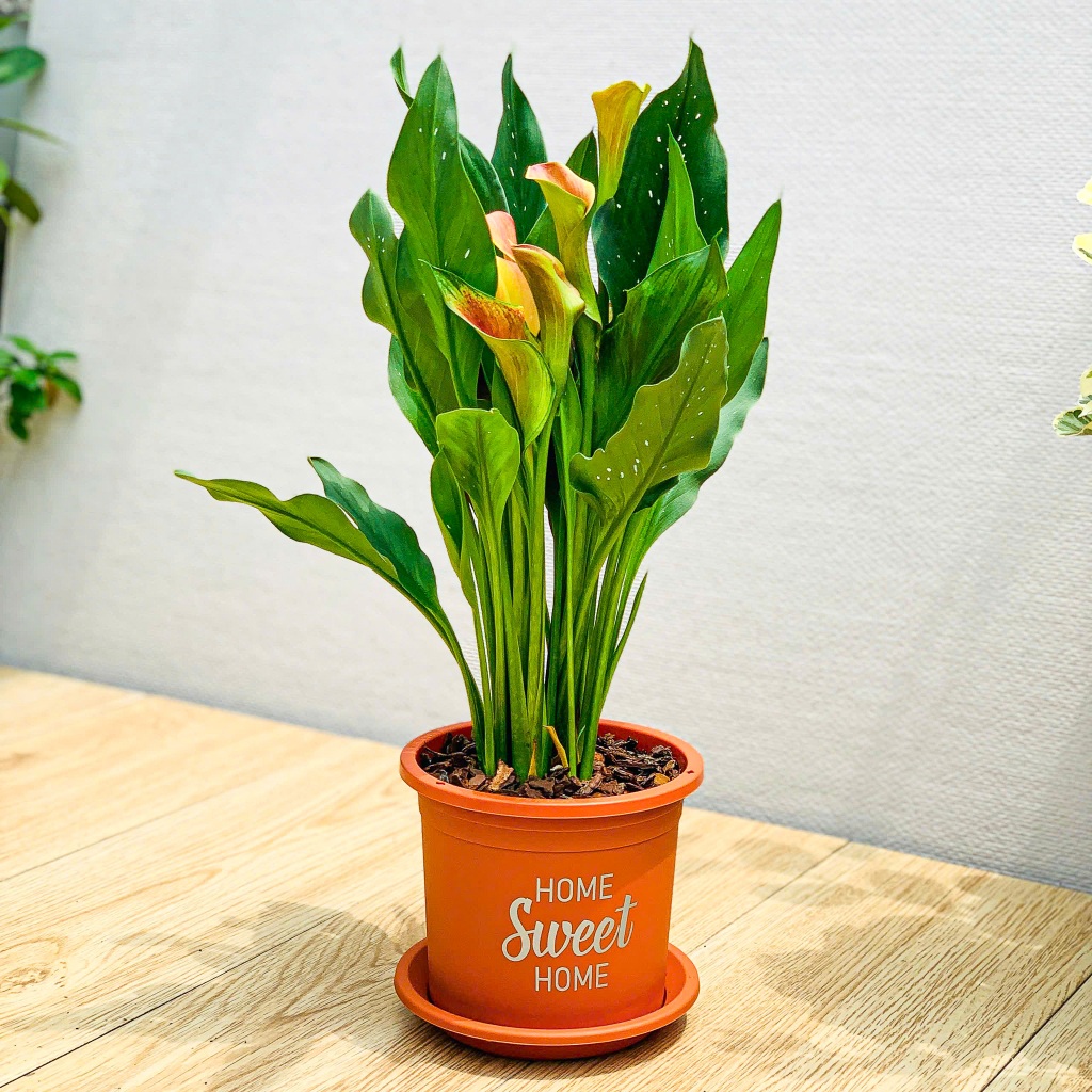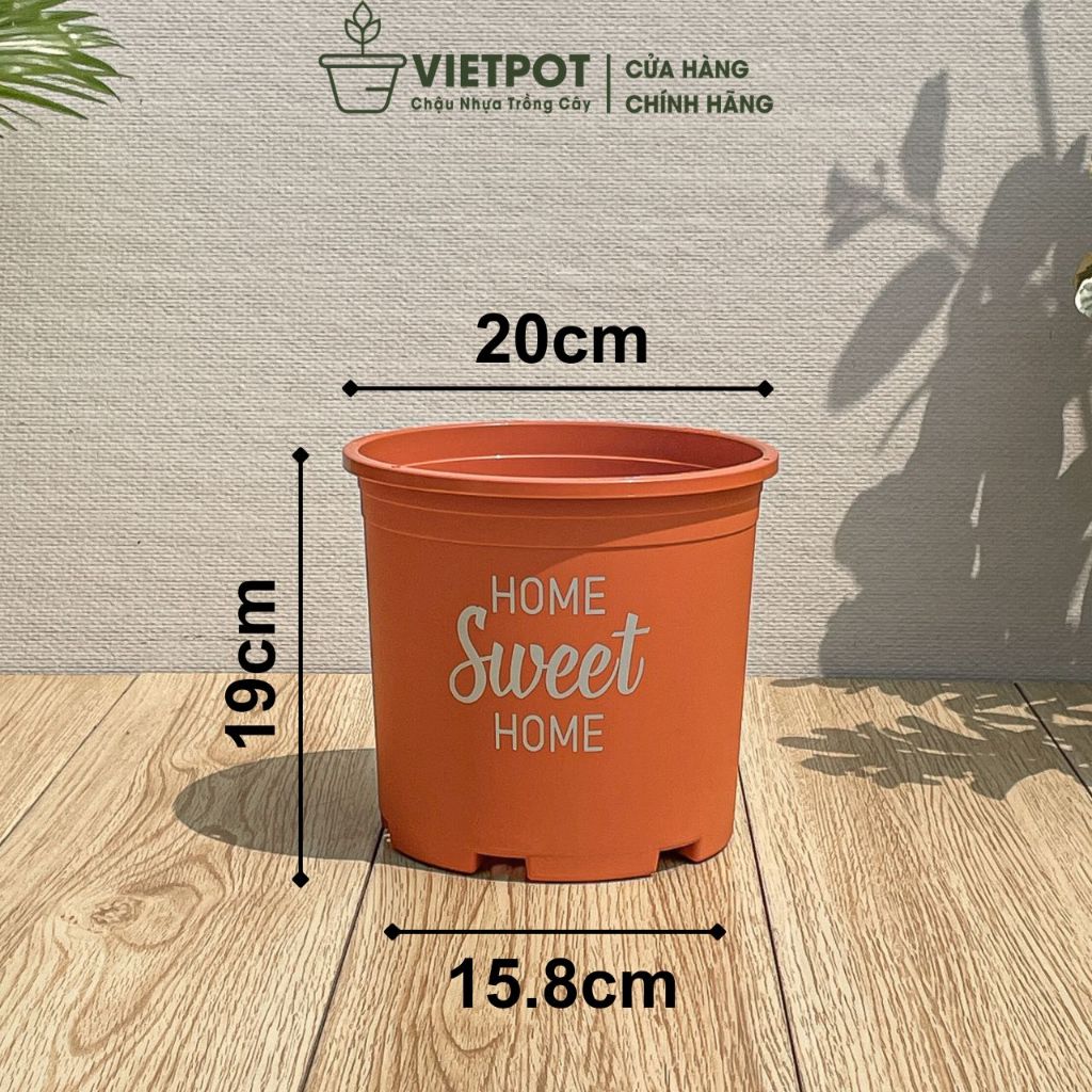Chậu nhựa trồng cây VIETPOT, màu cam, hoa văn Sweet Home, trồng hoa kiểng lá, để nhà, sân vườn.