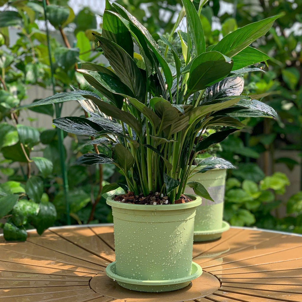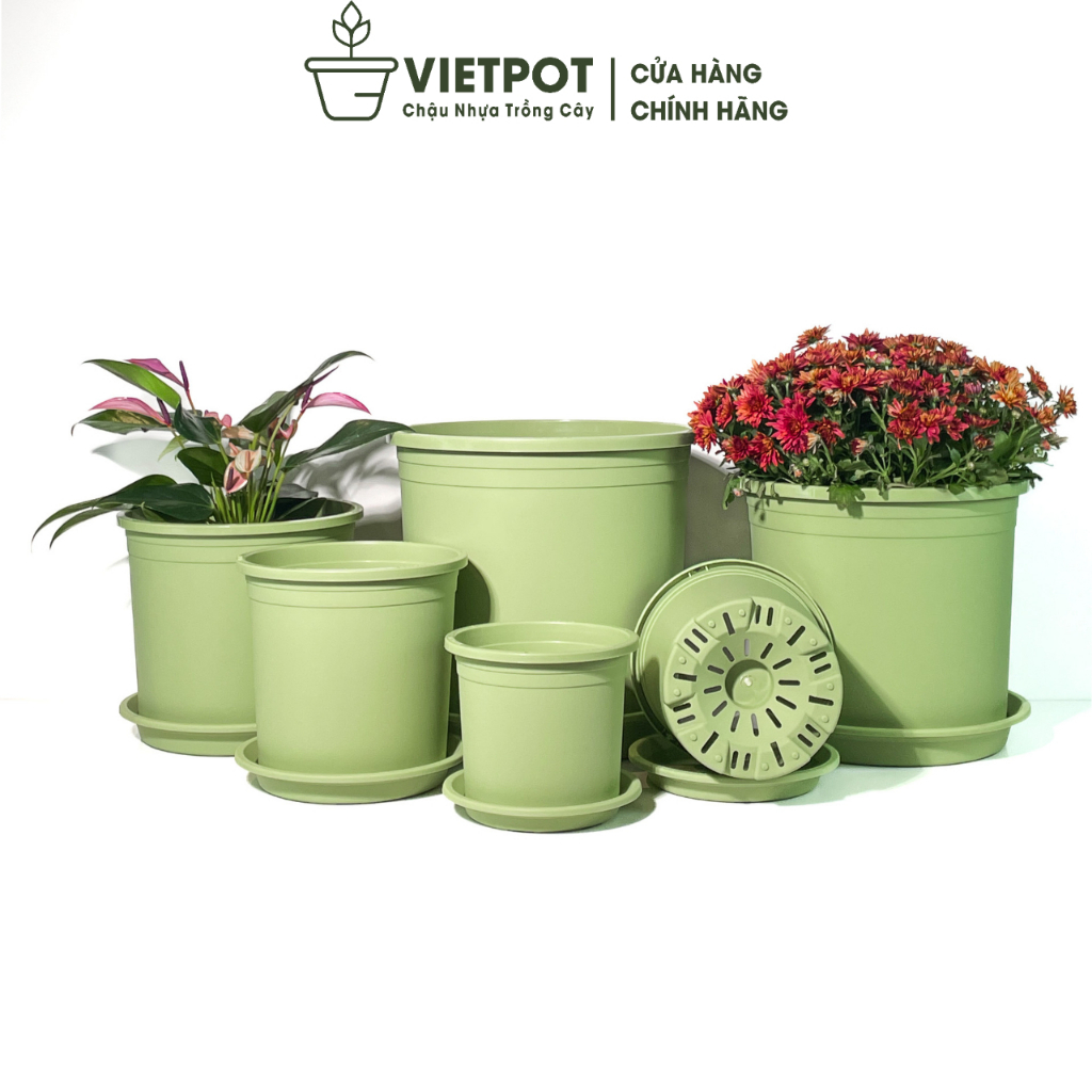 Chậu nhựa trồng cây VIETPOT.VN, xanh Mint Trơn, trồng kiểng lá hoa hồng, để bàn, ban công sân vườn.