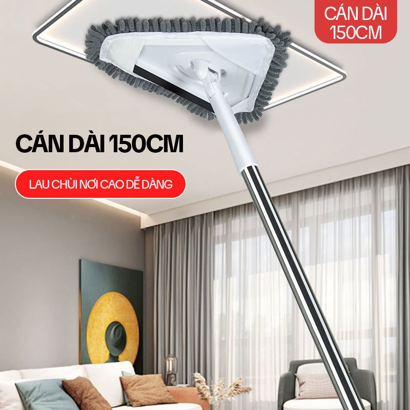 Cây Lau Trần Nhà KITIMOP A3, Chổi Lau Tường Hình Tam Giác Xoay 360 Độ, Cán Dài 150cm