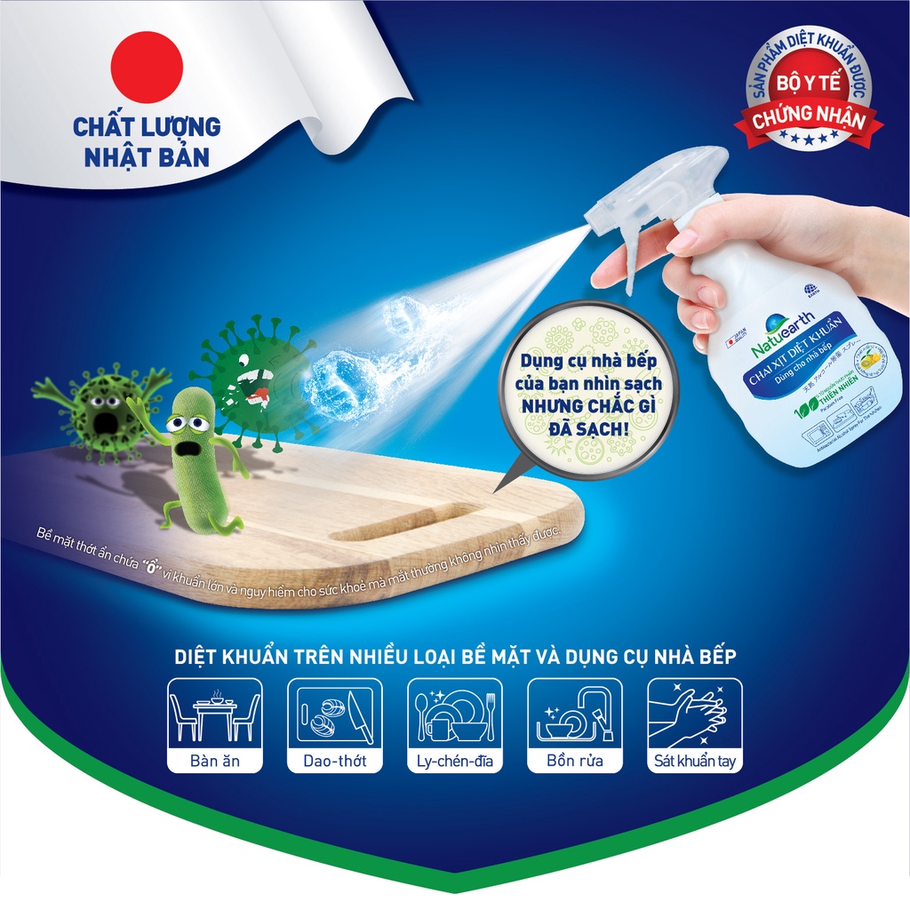 Chai Xịt Diệt Khuẩn Natuearth 410ml - Dùng trong gia dụng và Y tế
