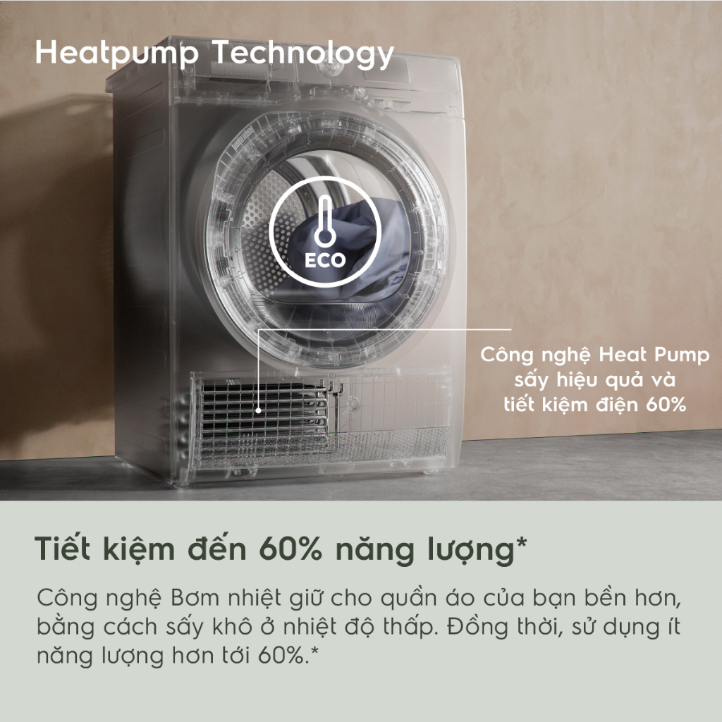 Free giao lắp - Máy sấy bơm nhiệt 9kg UltimateCare 700 - Xám đen Onyx EDH903R7SC