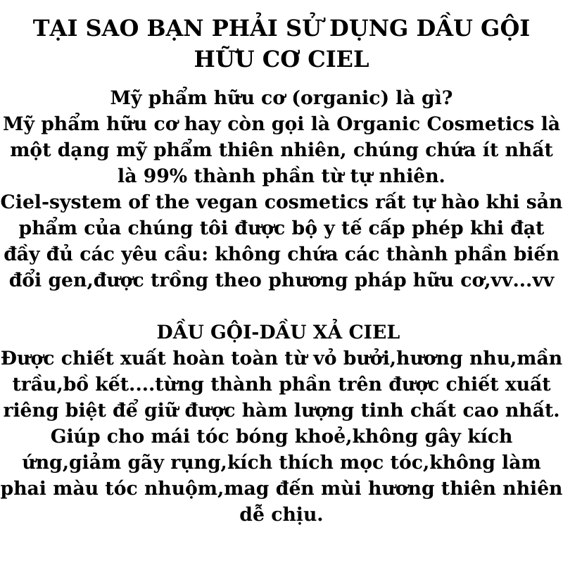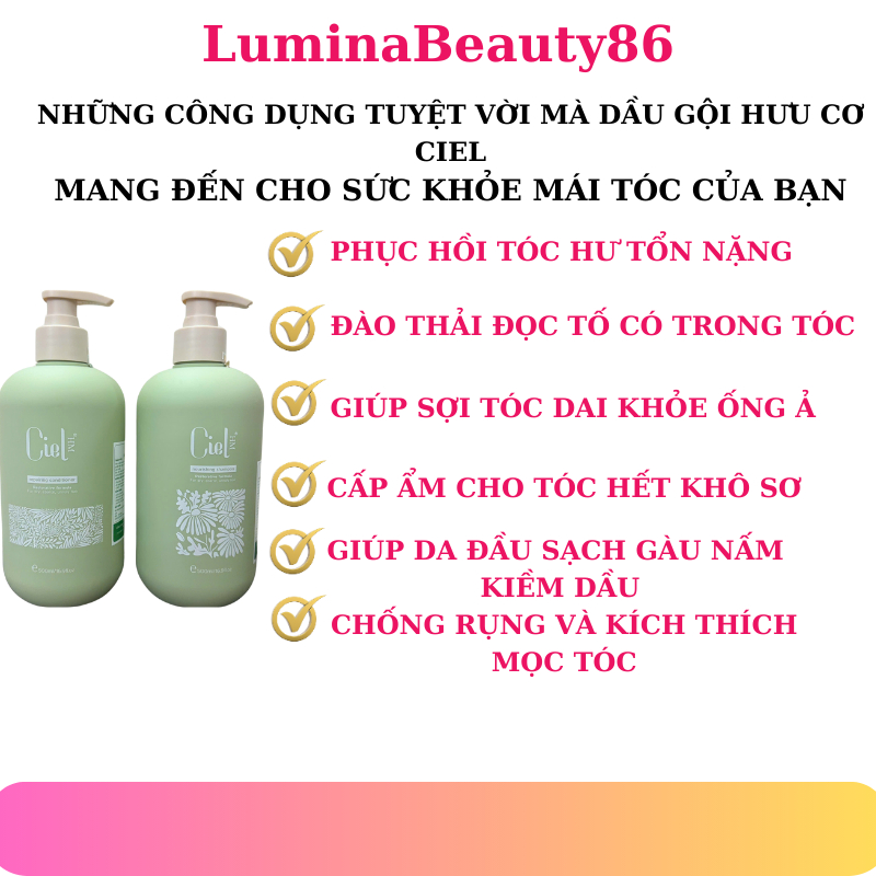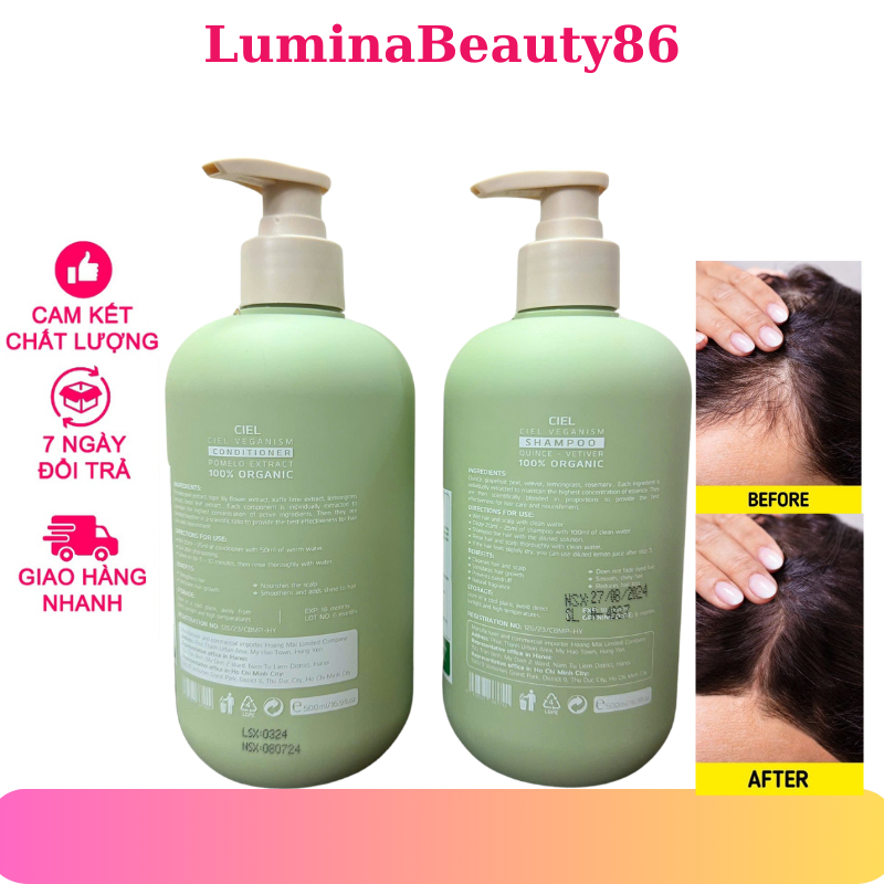 Dầu gội xả dưỡng sinh organic hữu cơ CIEL 500ML sạch gàu nấm ngứa kiềm dầu hiệu quả , chống rụng kích thích mọc tóc