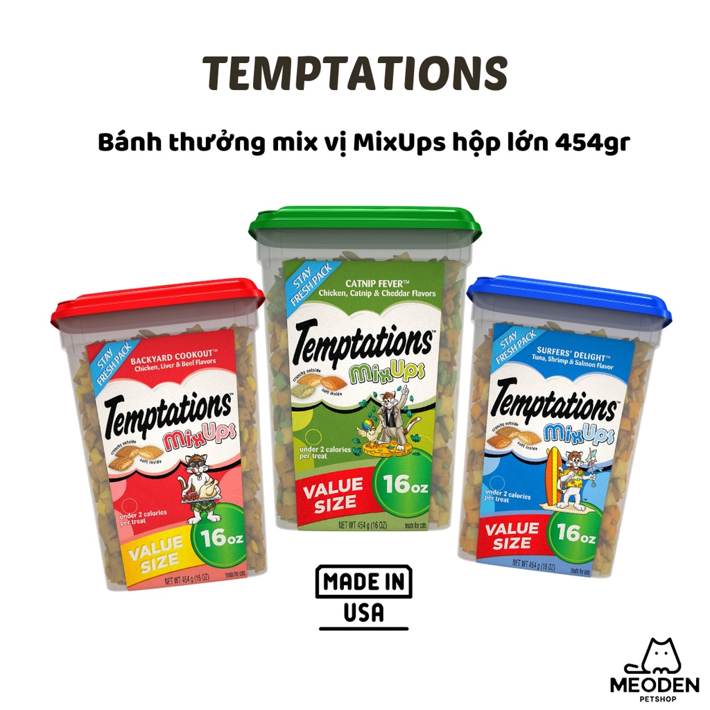 Bánh thưởng nhiều vị Temptations MixUps cho mèo nhập Mỹ (Date mới)
