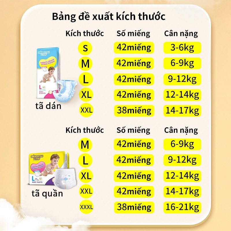 [Rẻ hơn,Tốt hơn] AIKERRSU Bỉm/tã dán/quần tã trẻ em nhẹ và thoáng khí,Đủ Size S/M/L/XL/XXL/XXXL